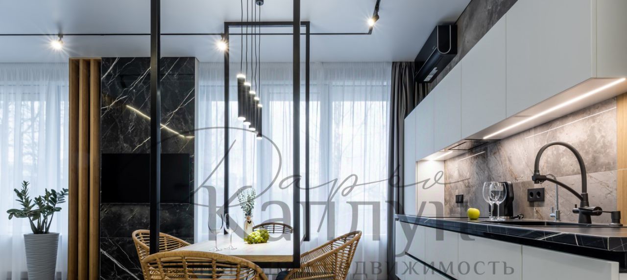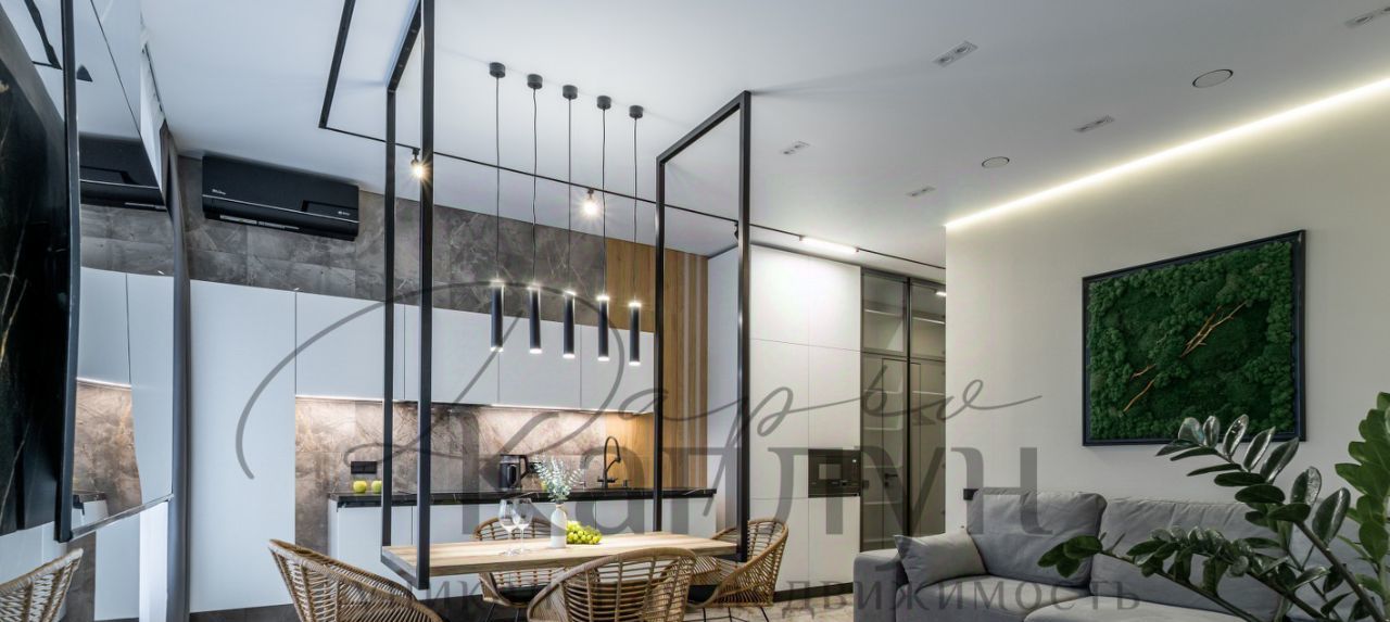 В квартире отличная планировка - выделена спальня, просторная зона кухни гостиной. Использованы материалы премиум-класса (керамогранит, декоративная штукатурка, итальянская плитка).