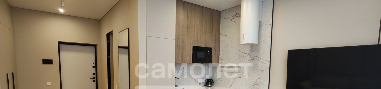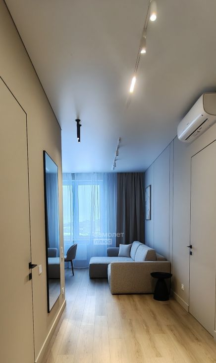 В квартире произведена очень грамотная эргономичная планировка: изолированная спальня с собственной гардеробной комнатной, гостиная совмещенная с кухней, ванная комната с душевой кабиной.