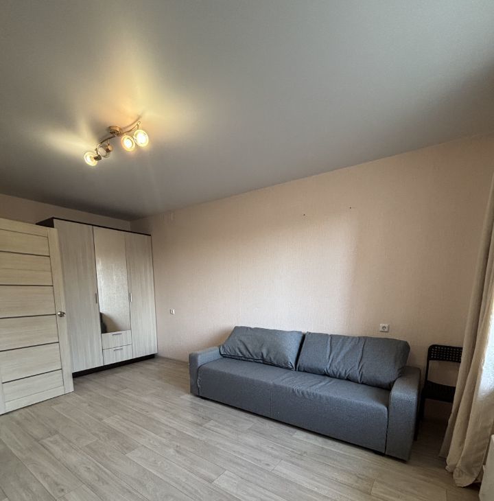 Сдаётся уютная однокомнатная квартира на первом этаже современного дома, построенного в 2019 году. Общая площадь квартиры составляет 32 кв. м, из них 18 кв. м — жилая площадь и 8 кв. м — кухня. Высота потолков — 2,65 метра. Окна выходят во двор, что обеспечивает тишину и спокойствие.