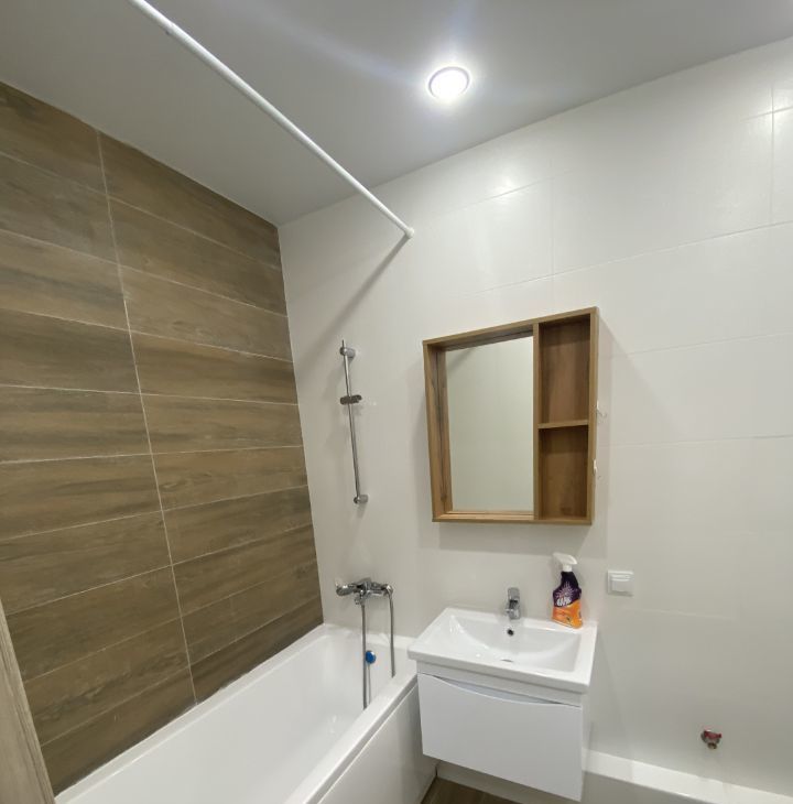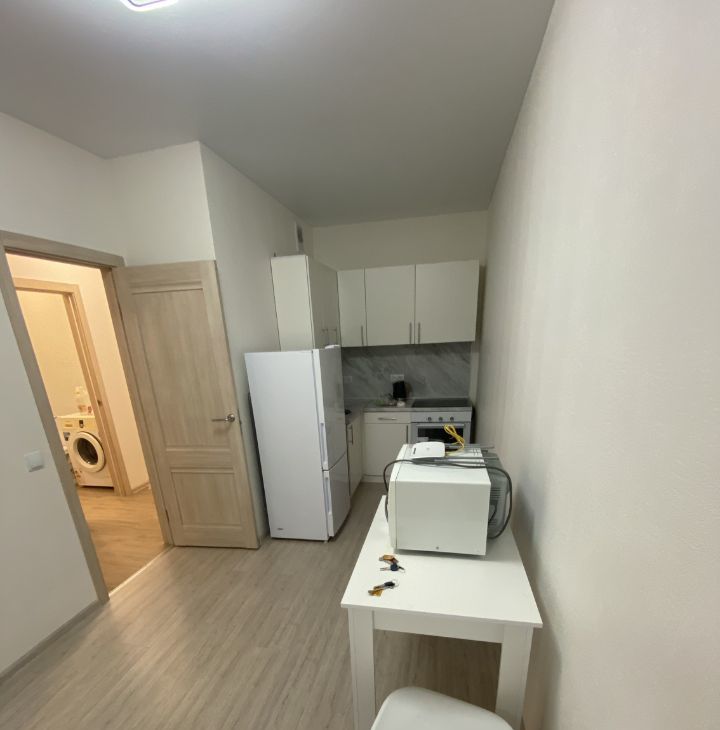 В квартире сделан свежий евроремонт. На кухне есть вся необходимая мебель, а также современная техника: холодильник и стиральная машина, микроволновая печь. Планировка включает совмещённый санузел с ванной. Из дополнительных преимуществ — наличие теплой лоджии, можно использовать как кабинет.