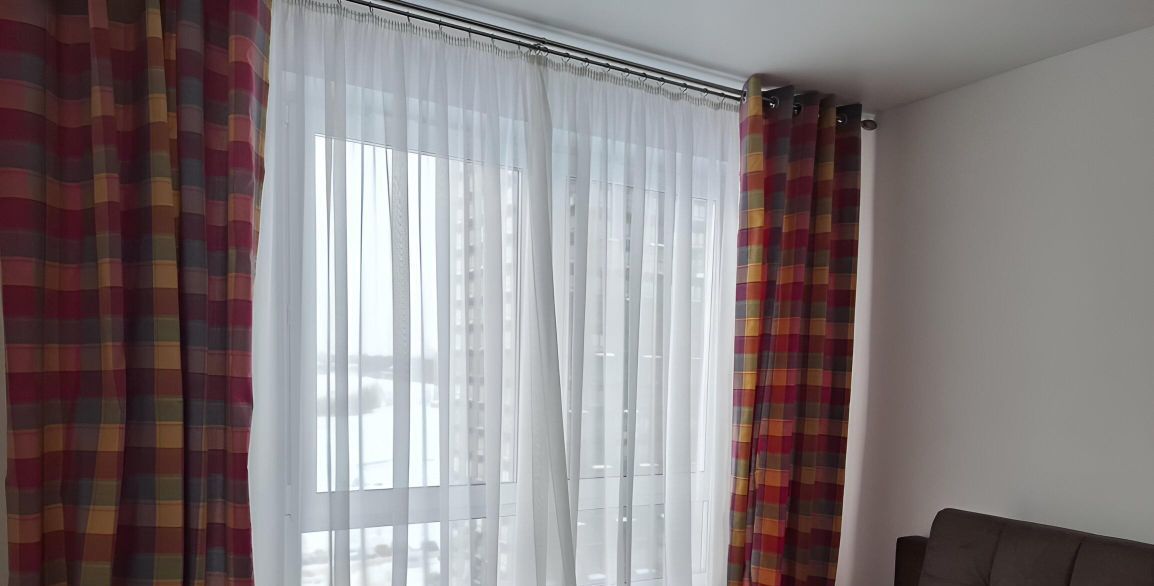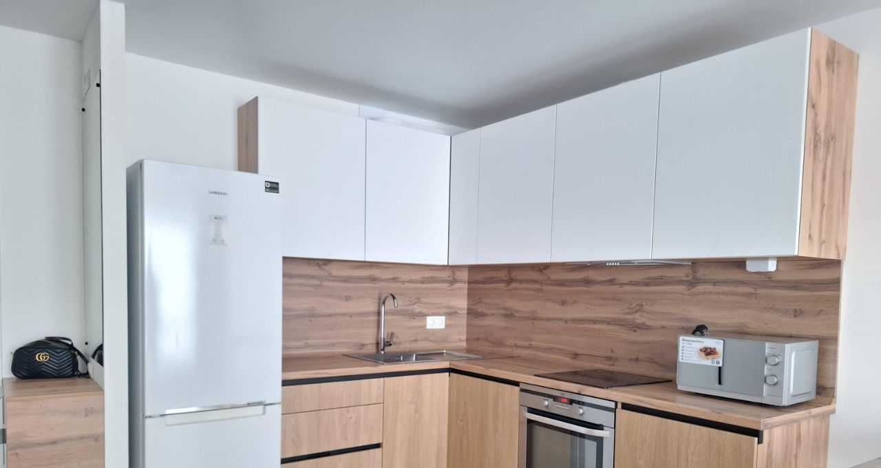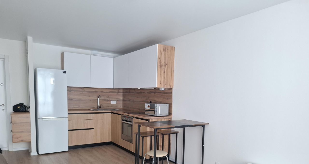 Совершенно новая просторная квартира европланировки 1+ в новом доме ЖК Саввин Парк. Квартира площадью 38 кв.м, в т.ч. комната-спальня 13 кв.м и кухня-гостиная 18 кв.м. Свежий качественный ремонт, полностью вся новая мебель и новая техника, хорошее освещение благодаря большим окнам.