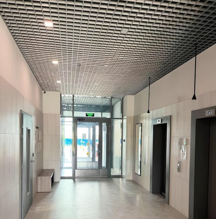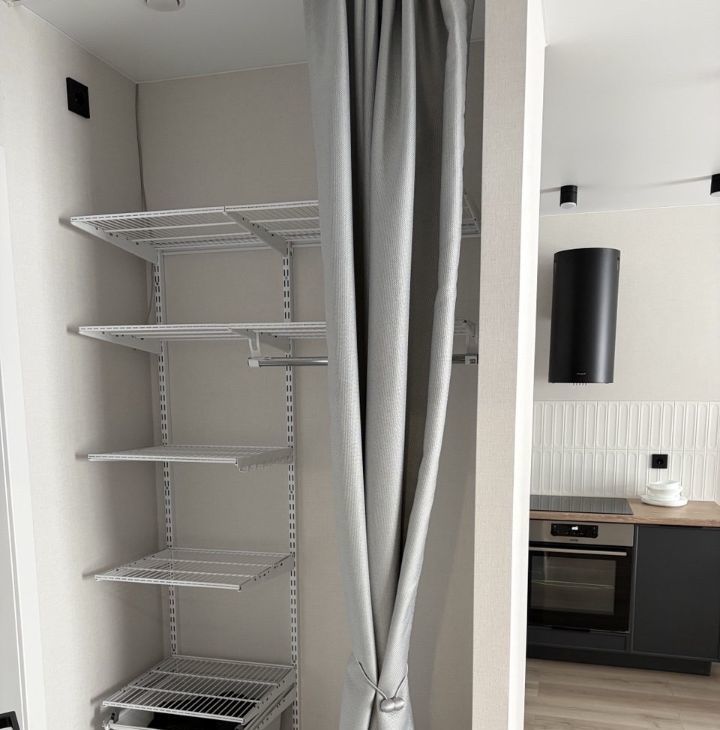 Функциональная прихожая с системой хранения дополняет ощущение аккуратного, организованного пространства.