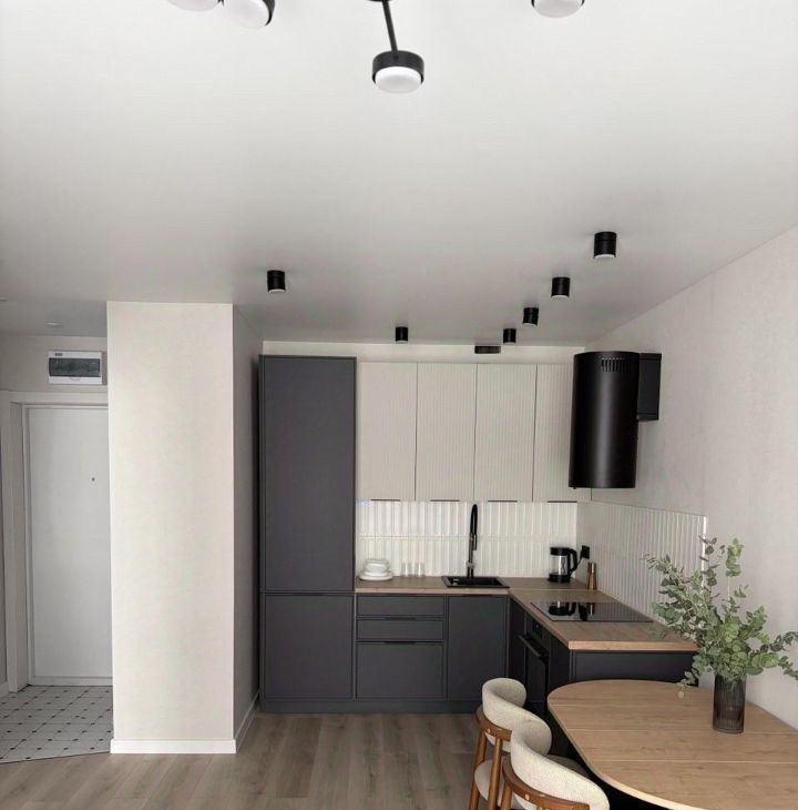 Просторная кухня-гостиная полностью укомплектована техникой и посудой, можно заезжать и жить с первого дня. Встроенный холодильник, духовой шкаф, варочная панель, удобная обеденная зона и уютный диван делают пространство идеальным для жизни и отдыха.