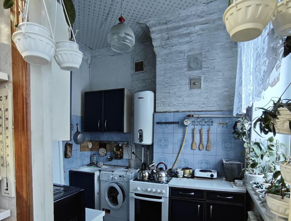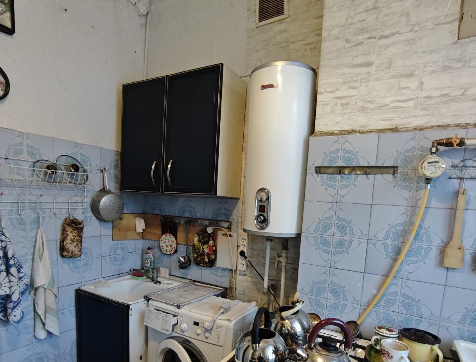 Кухня 6,1 кв.м., если покупателю нужно - оставляем кухонный гарнитур. Санузел совмещённый, отделан плиткой. Горячая вода от бойлера. В гардеробной можем оставить шкафы.