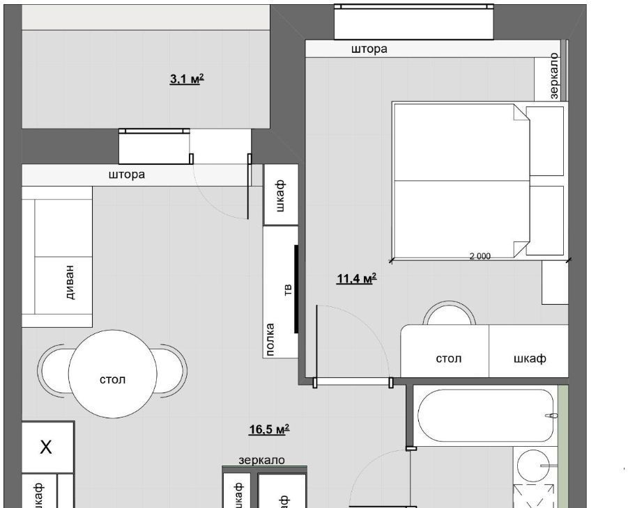 Имеются: посудомоечная машина, стиральная машина, кухонный гарнитур с варочной панелью, холодильник, диван, стол/стулья, шкаф в прихожей, телевизор, двуспальная кровать с ортопедическим матрасом, прикроватными тумбами, вместительный шкаф для одежды, дамский уголок/рабочая зона.