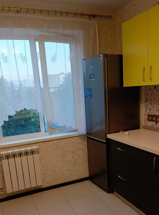 В квартире сделан евроремонт, все готово для комфортного проживания. На кухне и в комнате есть необходимая мебель. В распоряжении жильцов современная техника: холодильник, телевизор и стиральная машина. Ванная комната оснащена ванной, санузел совмещенный. Также есть лоджия для приятных вечеров.