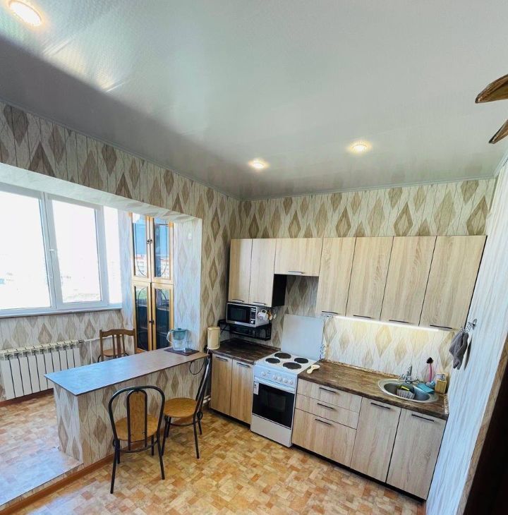 Большая квартира с спальней-гостиной, просторной кухней с панорамным видом, совмещённой с лоджией. Раздельный санузел.