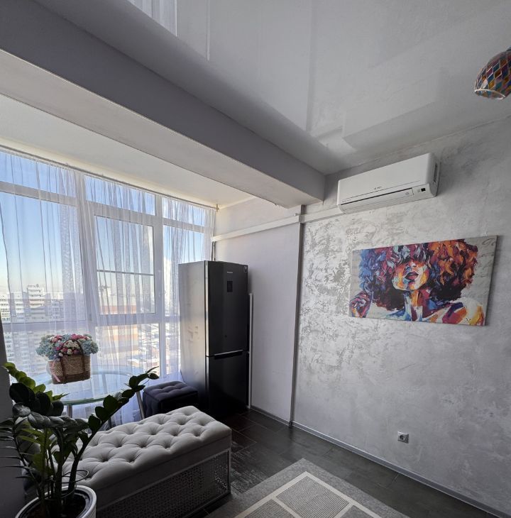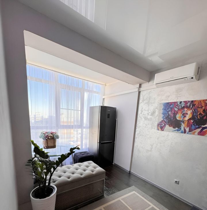 Продается большая однокомнатная квартира в ЖК Зенит. Фактически большая комната зонирована (перегородка из блоков), разделена на зал и комнату для ребенка (или спальню). Кухня большая, очень светлая, панорамные окна в пол. Использованы только качественные материалы, итальянская плитка в ванной с витражом, качественная сантехника.