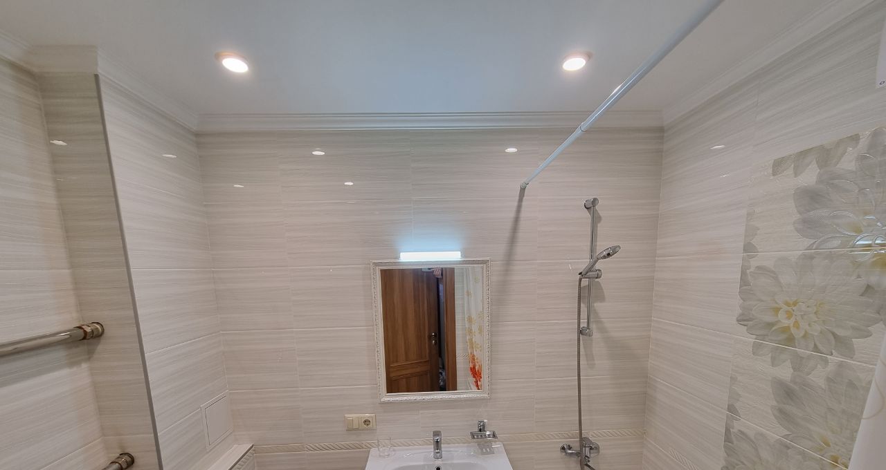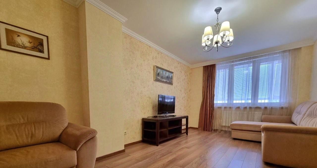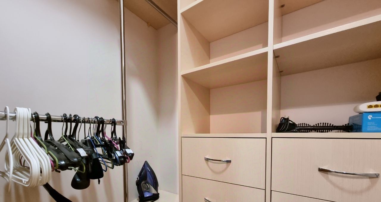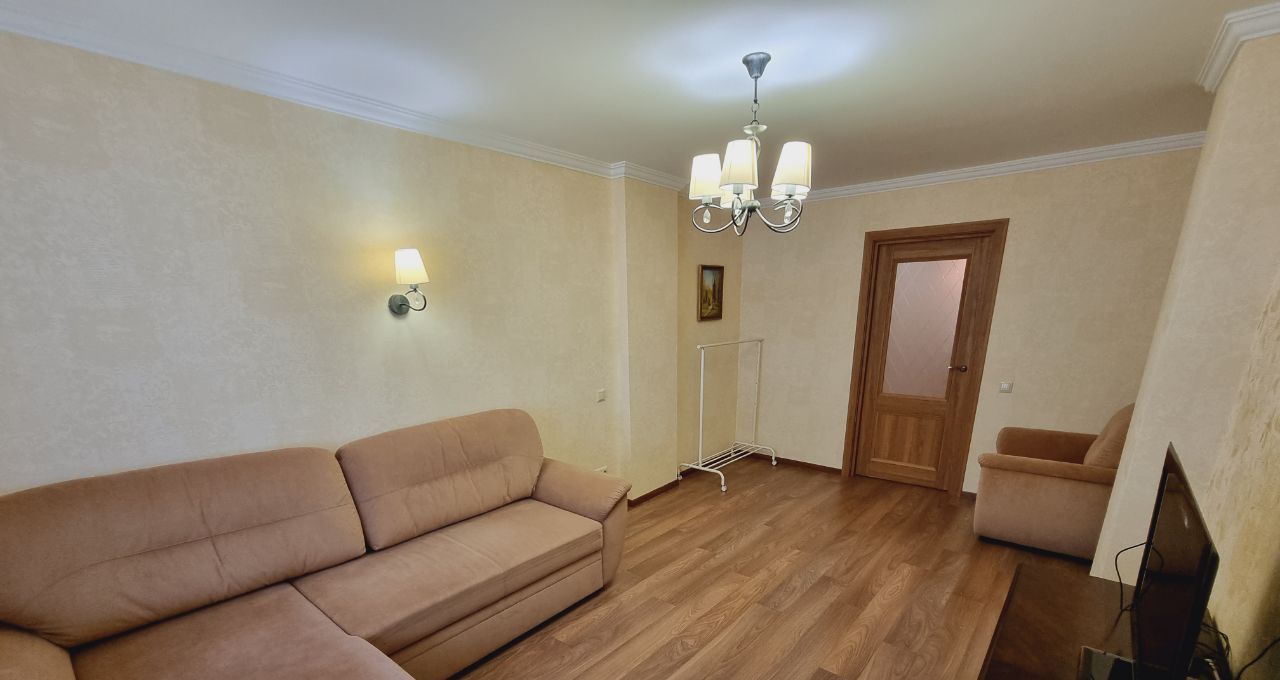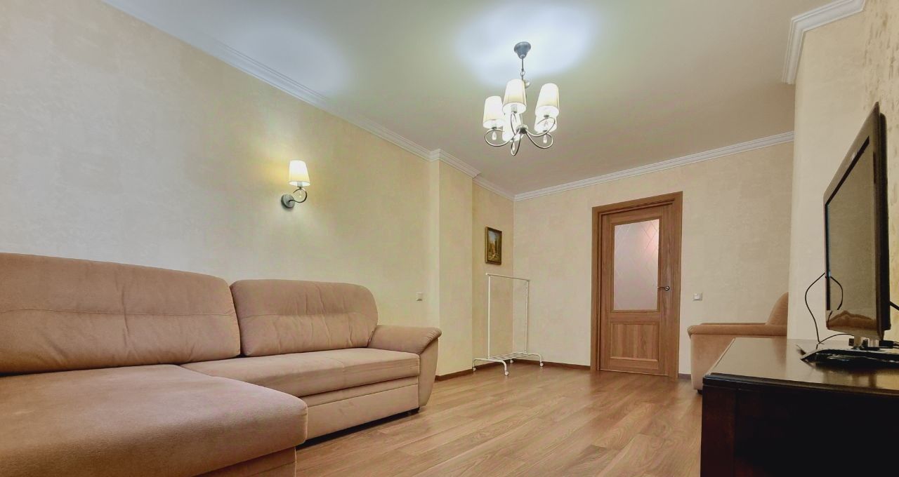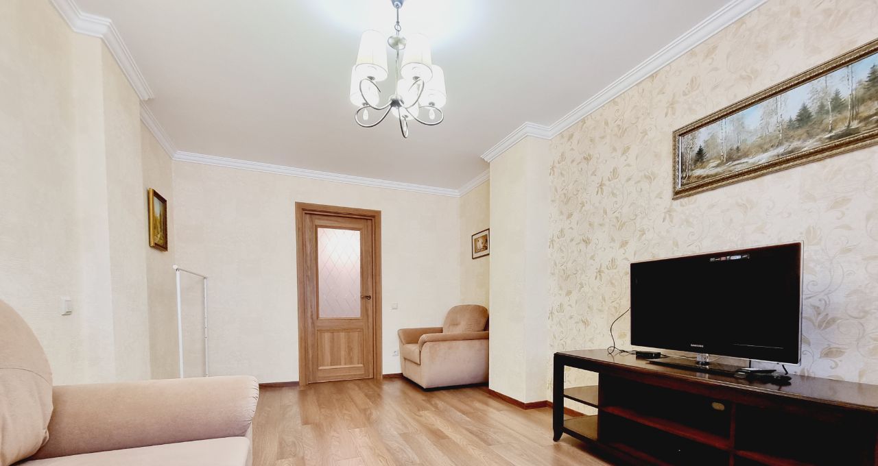 Пожелание собственника: без детей и животных. В квартире выполнен свежий евро ремонт. Просторная гостиная с мягким диваном и телевизором, оборудована шкафами для хранения вещей.