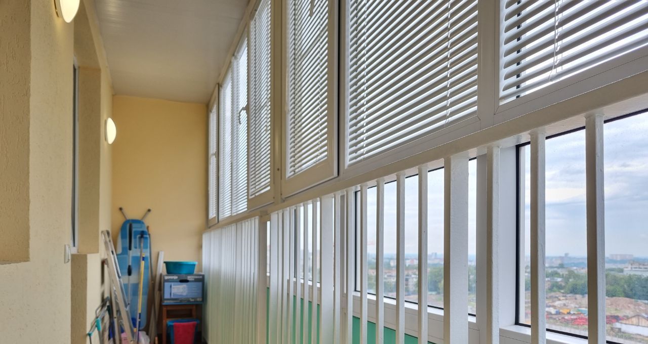 По всей ширине квартиры застекленная лоджия, окна выходят во двор, где есть открытая парковка. Дом монолитный, что обеспечивает хорошую тепло- и звукоизоляцию. В подъезде пассажирский и грузовой лифты.