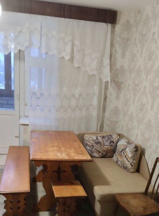 10-ти этажном кирпичном доме. Есть застекленная лоджия. Квартира просторная, общая площадь 50 кв .м., кухня 12 кв. м..
