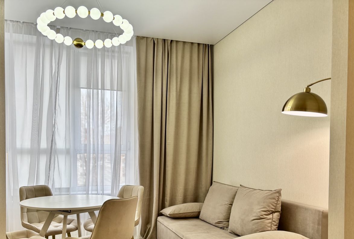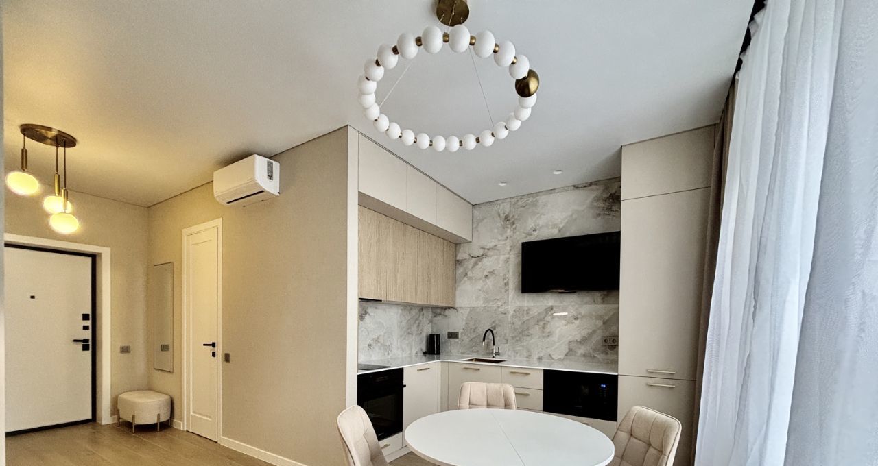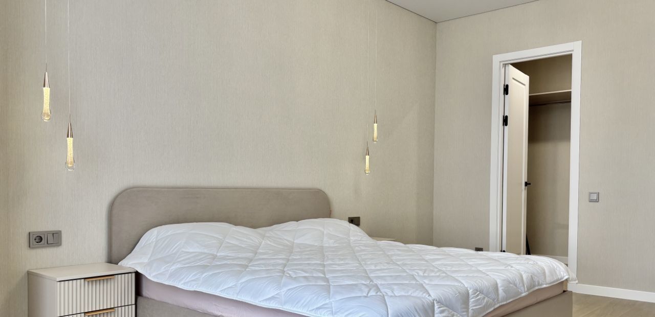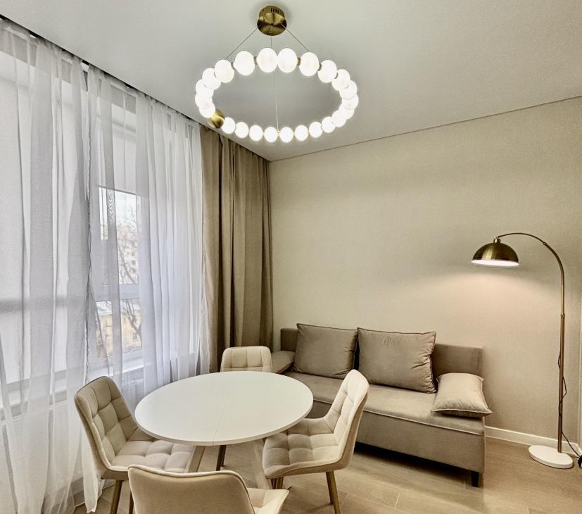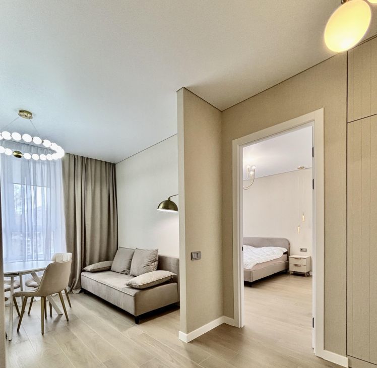 Общ. пл. 50 кв.м., просторная кухня-гостиная и спальня с вместительной гардеробной.