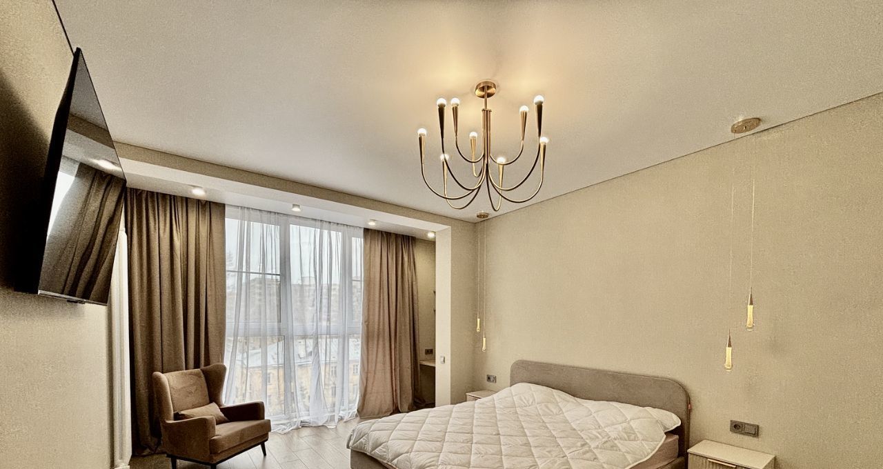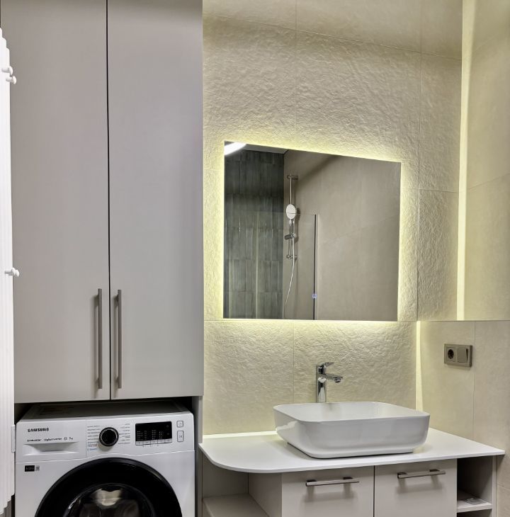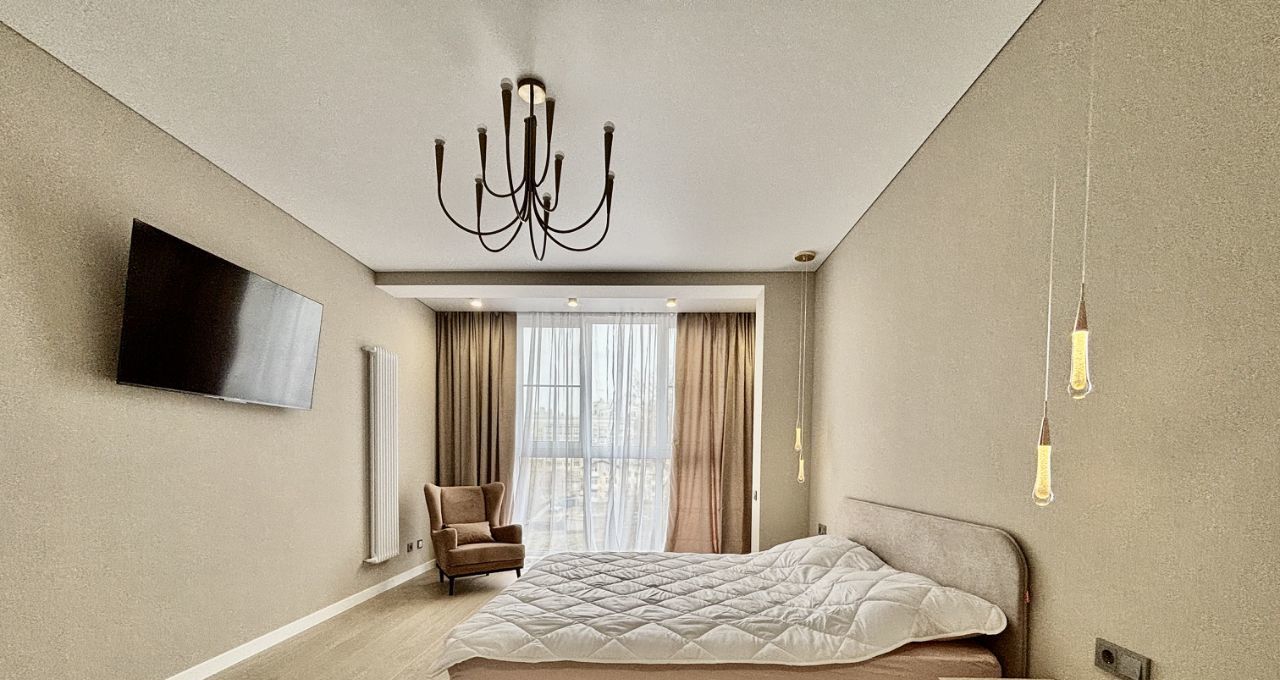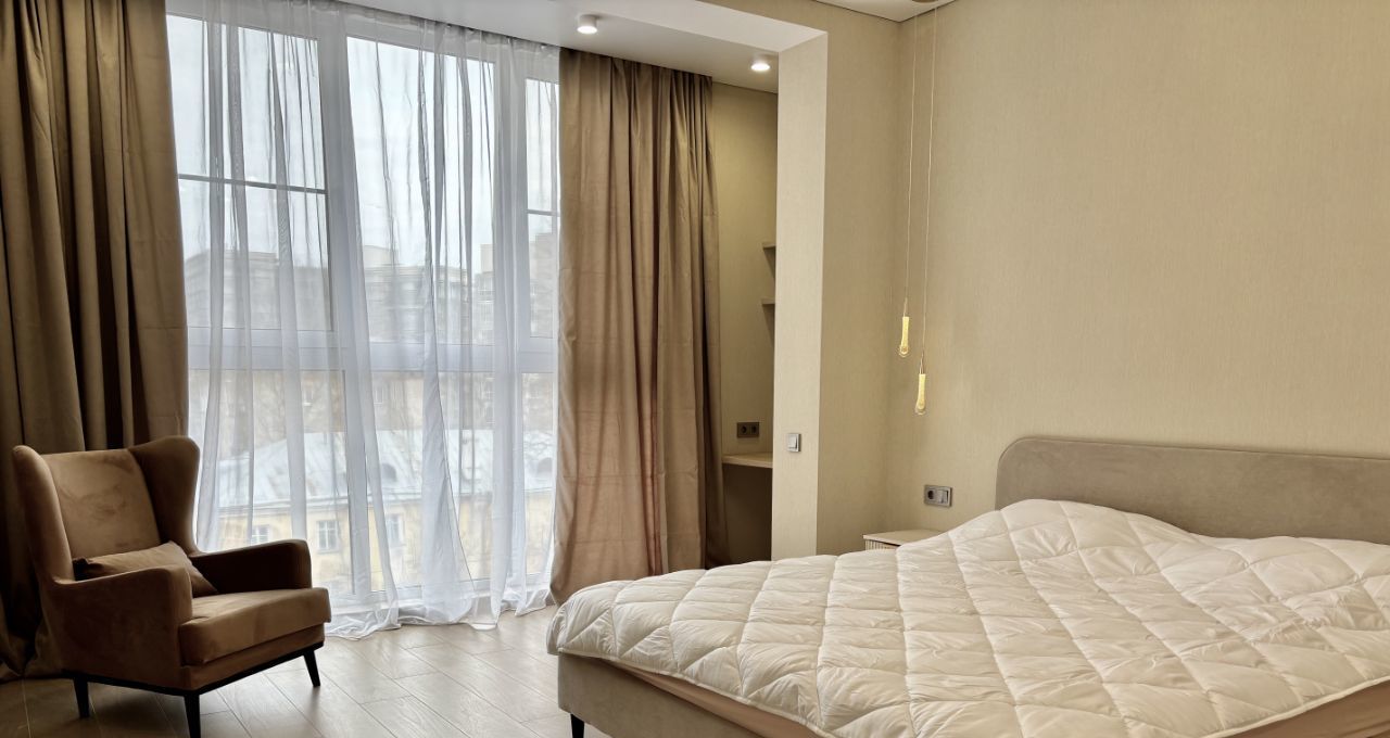 Общ. пл. 50 кв.м., просторная кухня-гостиная и спальня с вместительной гардеробной.