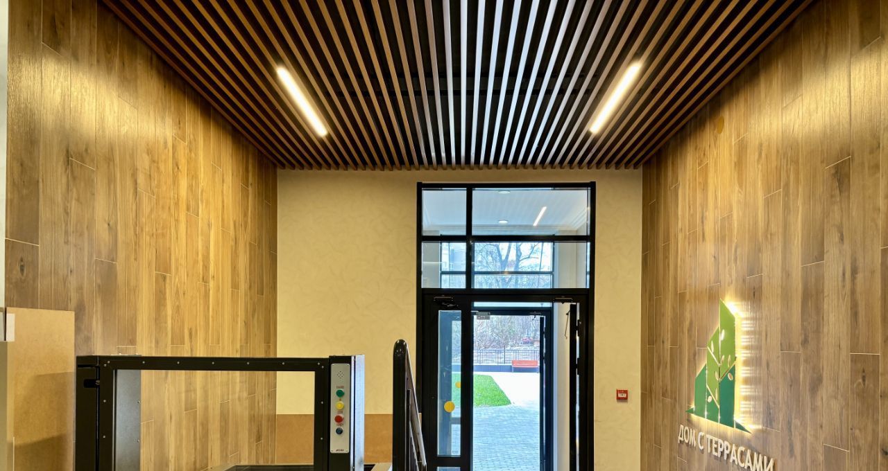 ЖК "Дом с террасами" - жилой комплекс бизнес-класса, расположен в деловом и культурном центре Нижнего Новгорода. Собственная закрытая благоустроенная территория, детские площадки. Круглосуточное видеонаблюдение, видеодомофон. Стильные входные группы, зона ожидания.