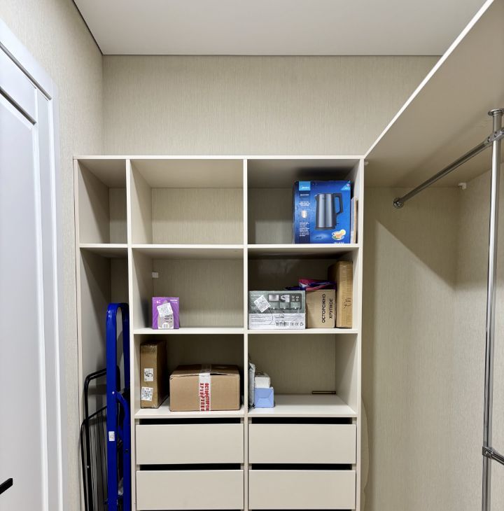 - В отдельной темной комнате оборудована вместительная гардеробная