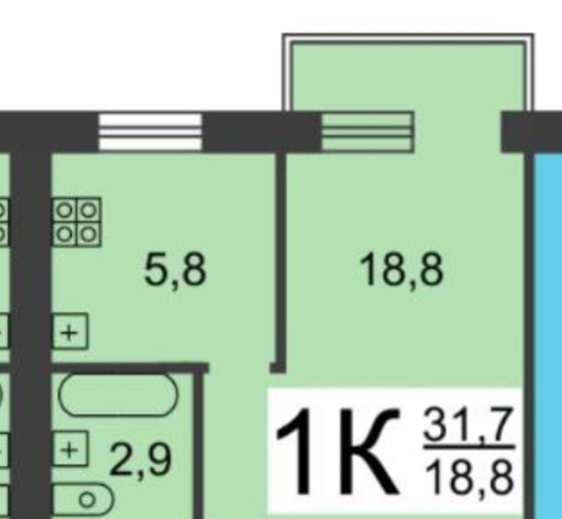 Студия Нижегородская область, Нижний Новгород ул. Родионова, 136Б (30.0 м²)