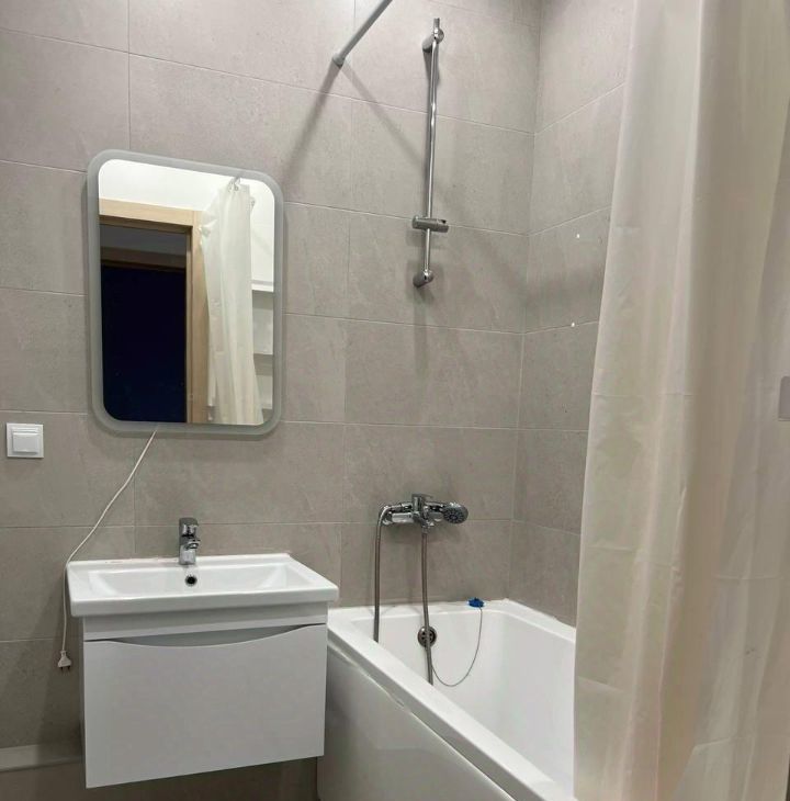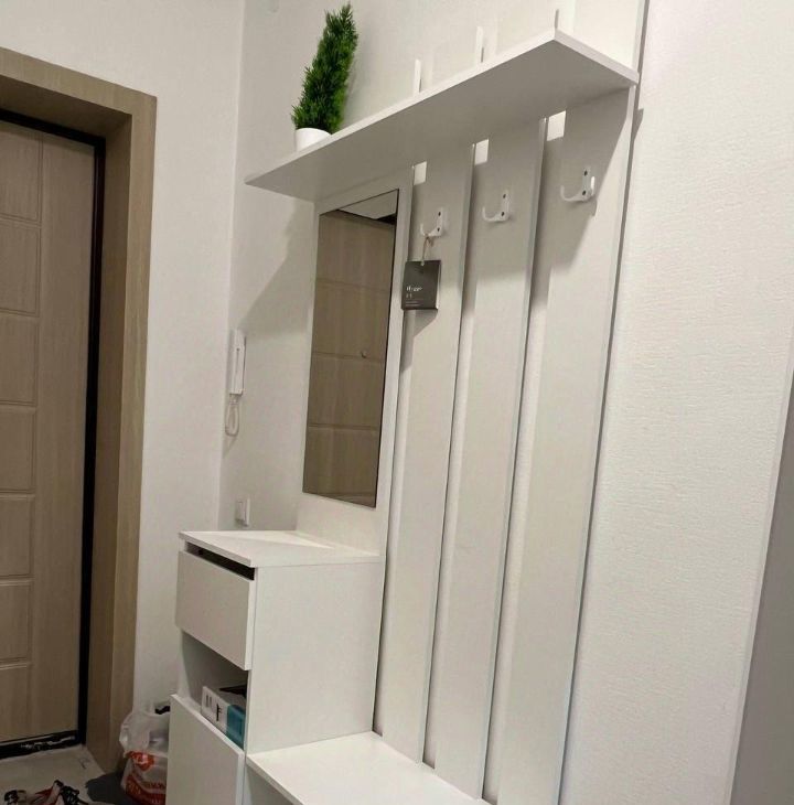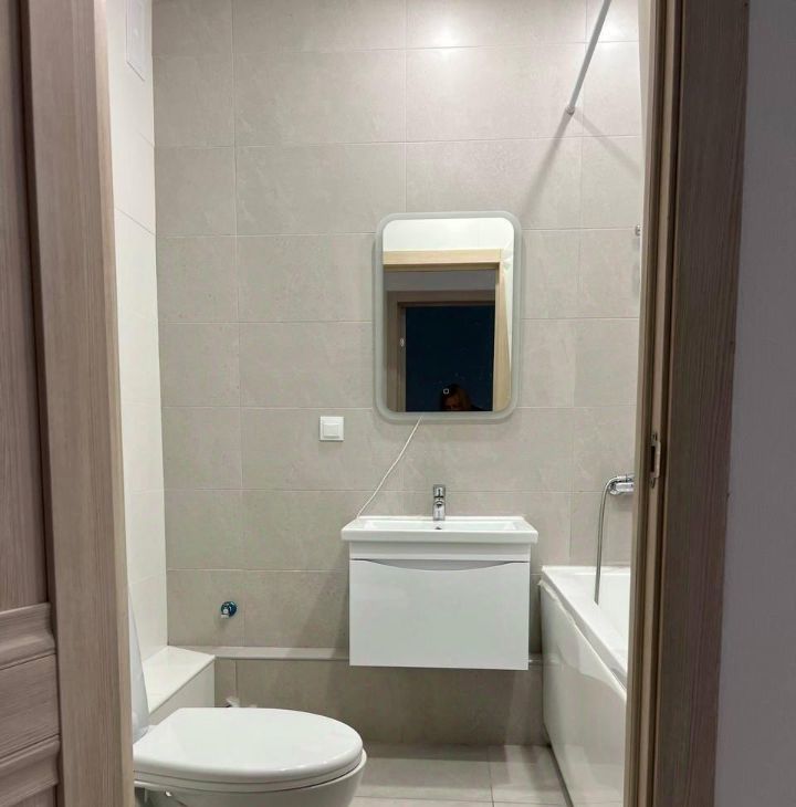 Ванная комната совмещенная, оборудована современной сантехникой и стильным дизайном. В прихожей предусмотрены удобные полки для хранения обуви и верхней одежды. Дом оснащен пассажирским и грузовым лифтами, а также открытой парковкой во дворе.