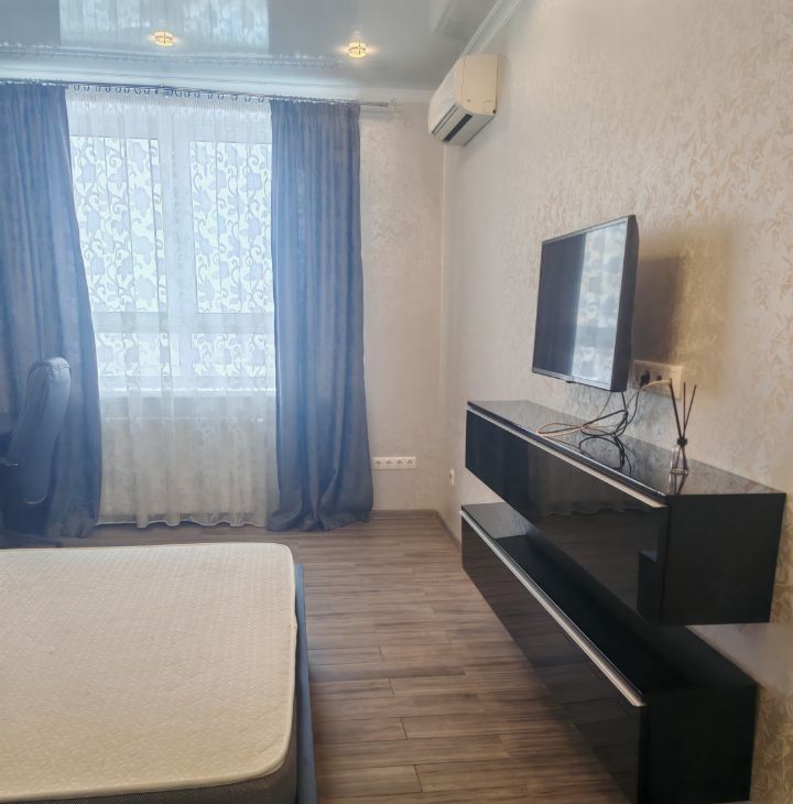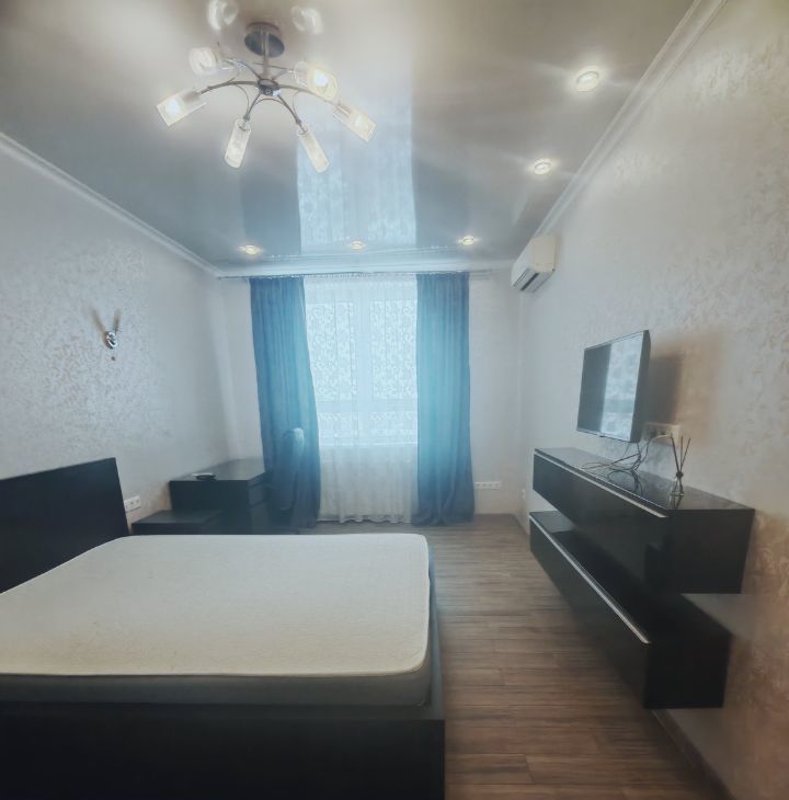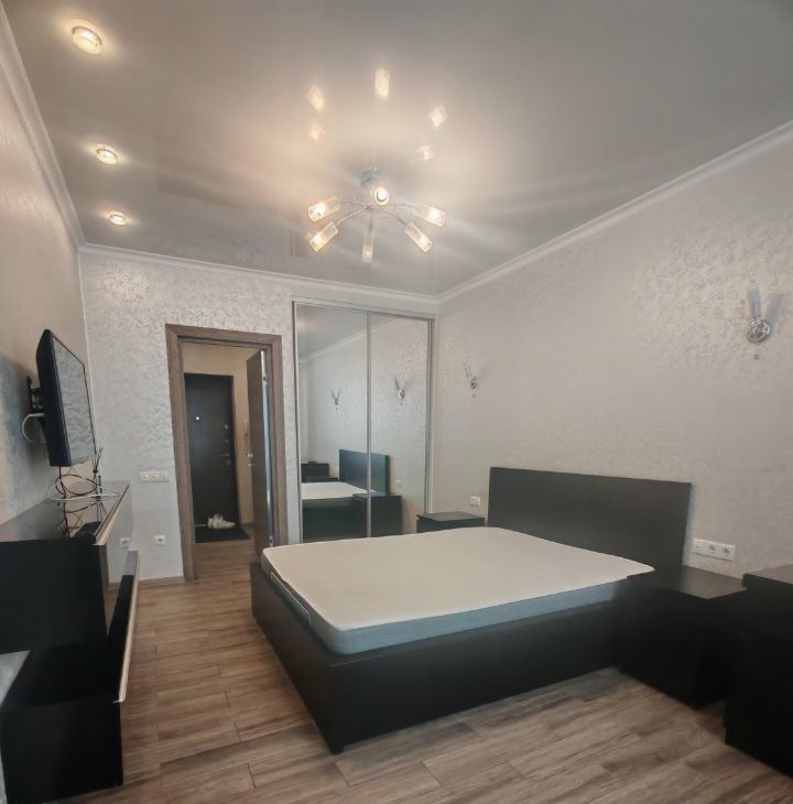 Расположена на 18/25 эт дома. В квартире выполнен современный. Качественный ремонт, что создает атмосферу уюта и современности. Просторная кухня оборудована всем необходимым: встроенная варочная панель, духовой шкаф, холодильник и стиральная машина, Микроволновая печь, чайник. В комнате большая кровать, установлен телевизор с кабельным/цифровым ТВ, а также вместительный шкаф для хранения вещей.