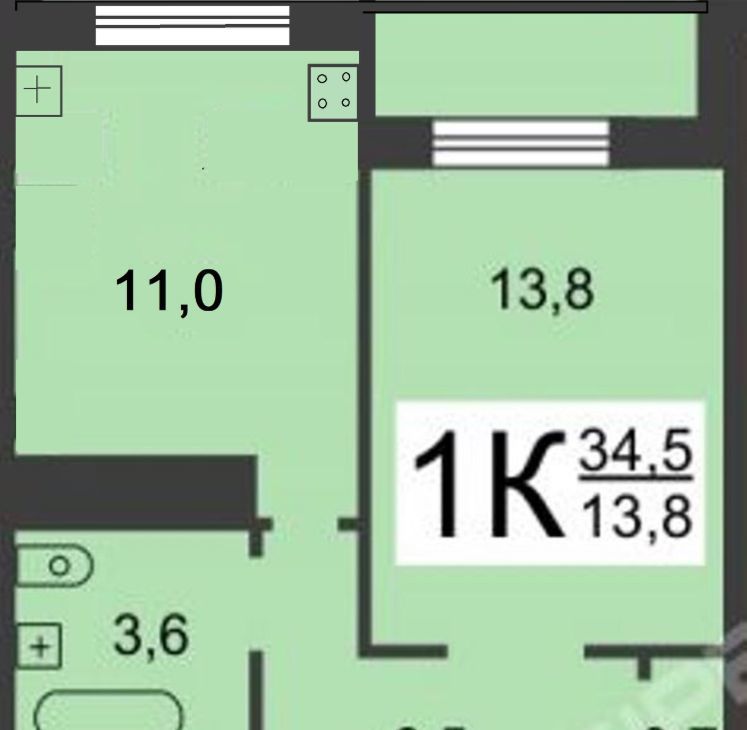 Студия Нижегородская область, Нижний Новгород бул. Южный, 14 (24.0 м²)