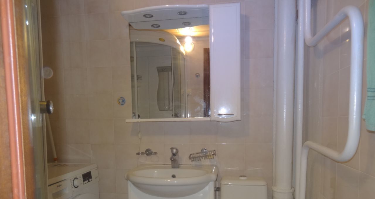 Мебель: 2-спальная кровать, письменный стол со стеллажами, зеркальный шкаф-купе в прихожей, стиральная машина-автомат, 2х-камерный холодильник LG, телевизор, диван раскладной двуспальный, встроенная кухня, микроволновая печь - всё новое.