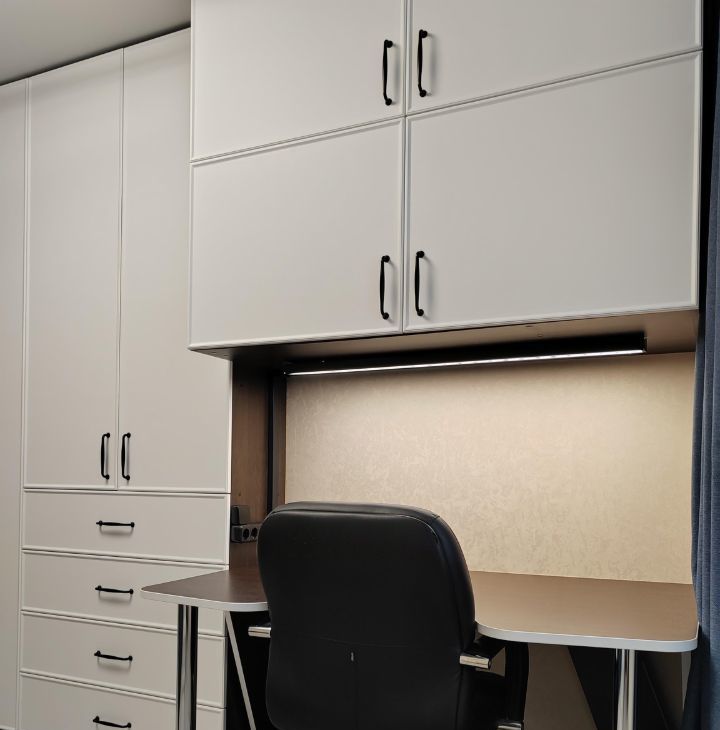 - дополнительные места для хранения во встроенных шкафах в комнате и на балконе;