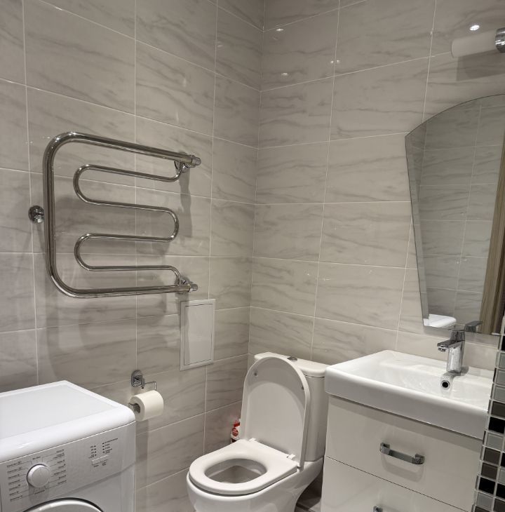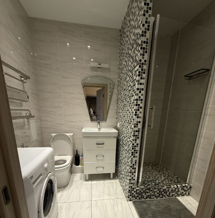 Санузел совмещённый, выполнен в светлых тонах с качественной отделкой. Лоджия застеклена, что позволяет использовать её круглый год. Из окна вид на парк Швейцария. Рядом ТЦ Океанис.