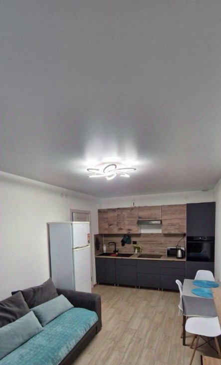 Кухня-гостиная с вместительным гарнитуром, индукционной плитой и духовым шкафом, дорогим диваном на пружинном блоке (раскладывается в 2-спальную кровать), холодильник, микроволновая печь,телевизор со Smart TV, Wi-Fi.