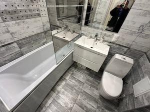 Ремонт выполнен в современных и светлых тонах, есть все, что нужно для комфортной жизни: двуспальная кровать с ортопедическим матрасом, просторный шкаф для хранения, рабочая зона, телевизор, журнальный столик, кондиционер, в кухне-гостиной располагаются функциональный кухонный гарнитур со встроенной техникой и подсветкой, раздвижной диван, обеденный стол и стулья. Санузел просторный, полностью укомплектован с множеством мест для хранения. В прихожей располагается еще один шкаф (купе) встроенный для размещения одежды. С лоджии открывается отличный вид. Дополнительно в квартире: сушилка для белья, утюг, гладильная доска, пылесос, посуда. Есть интернет и роутер.
