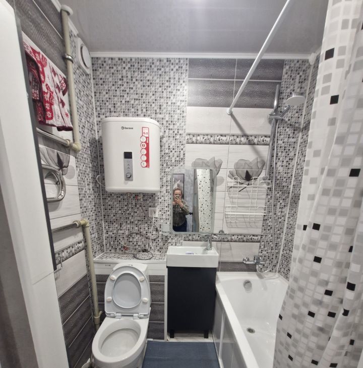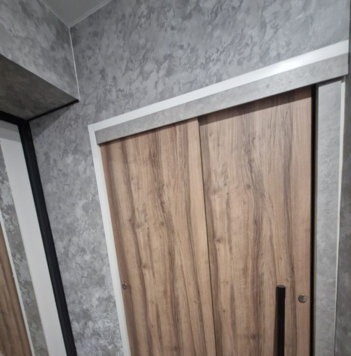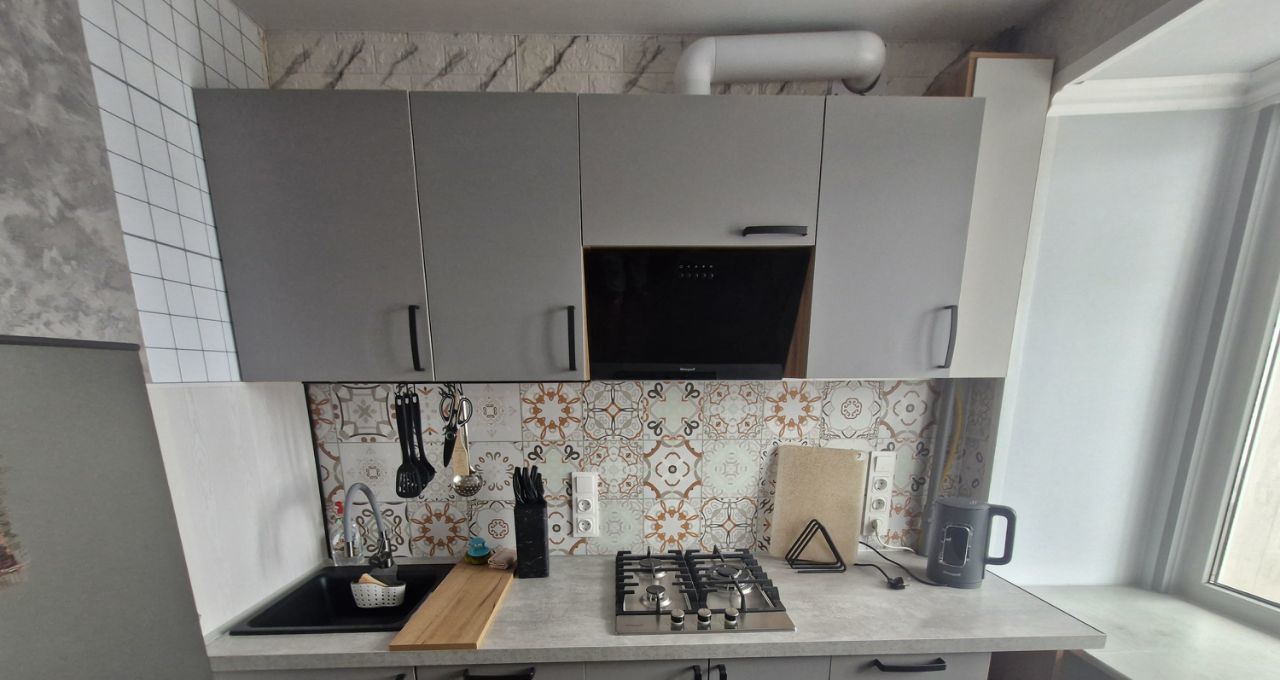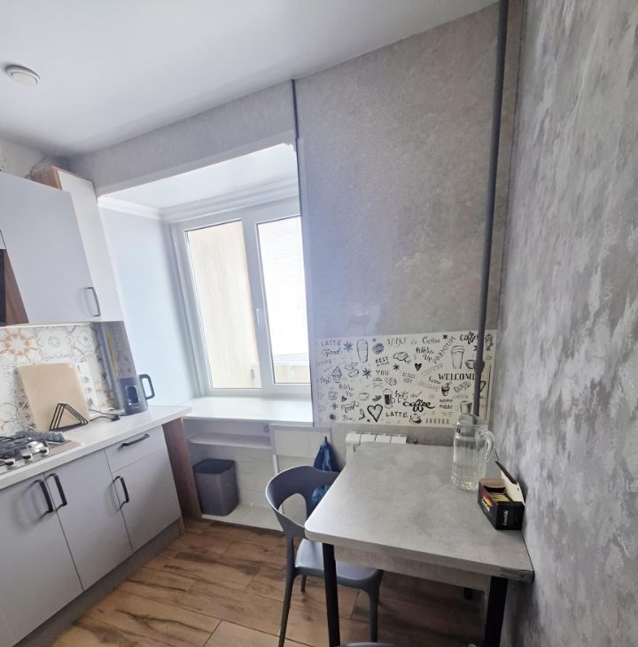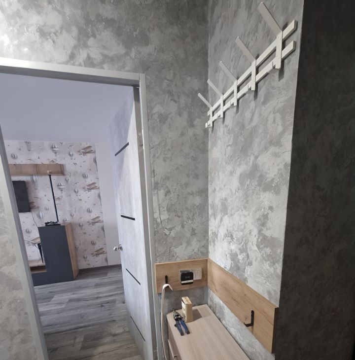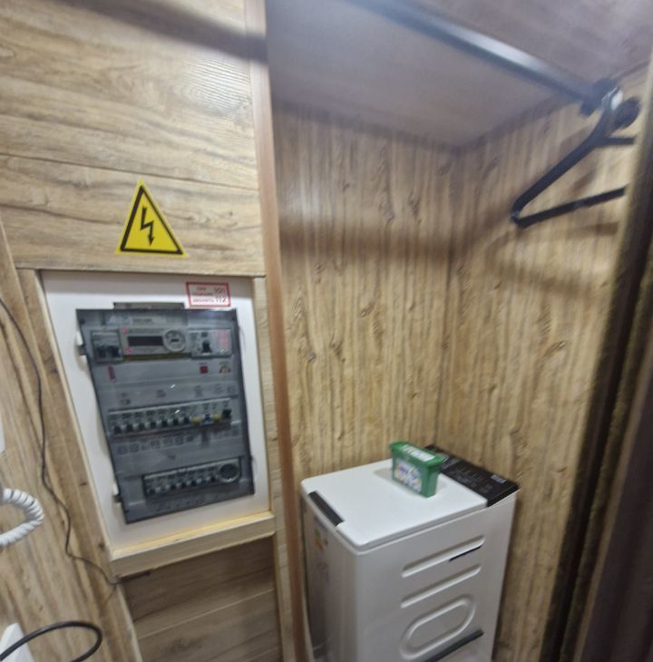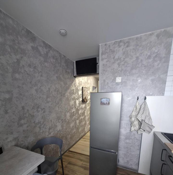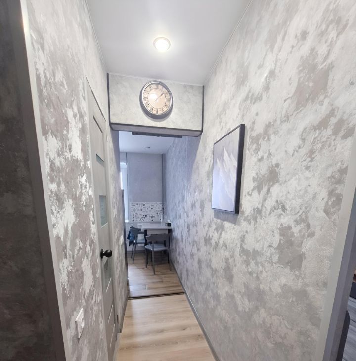 Кухня 5 кв.м (гарнитур , варочная панель 3 конфорки, холодильник, стол , 2 стула,тв, вытяжка,чайник). В коридоре гардеробная, где находится стиральная машинка, счётчик на электричество, возможность повесить/хранить одежду , обувь).