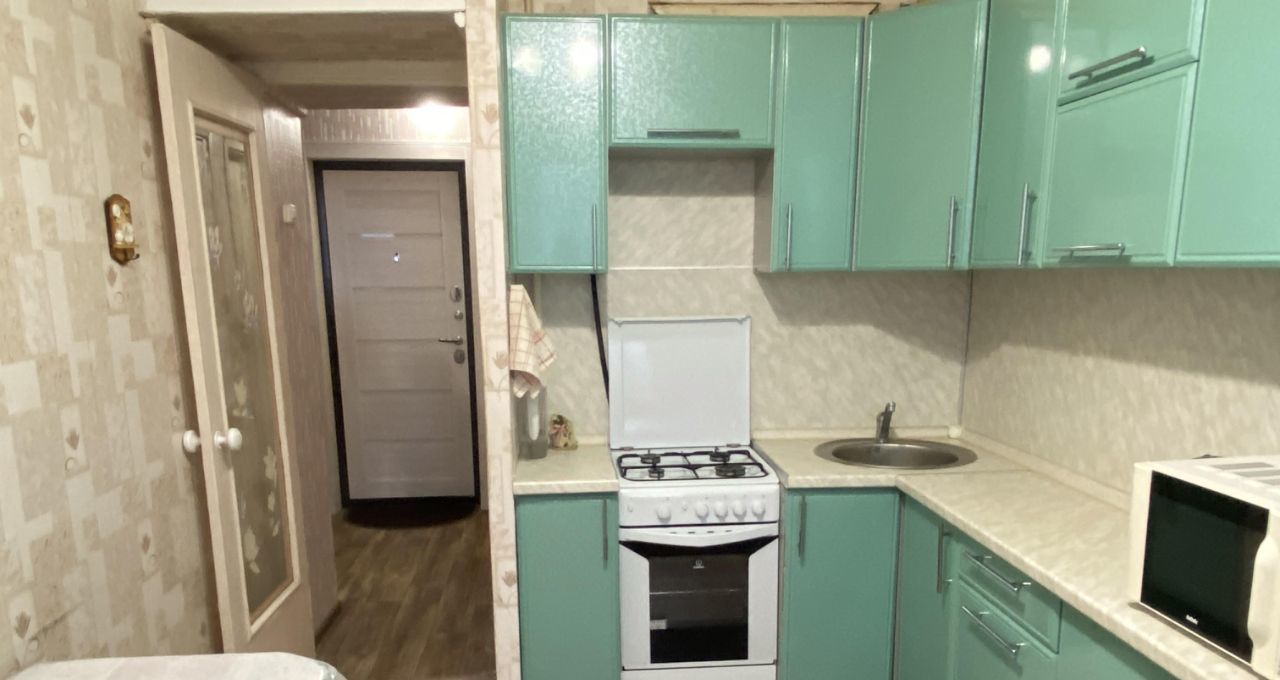 Квартира, общей площадью 34,4 м2, имеет оптимальную планировку - большая кухня 9,1 м2 и просторная комната 17,6 м2, раздельный санузел, а также отремонтированная лоджия 3 м2.