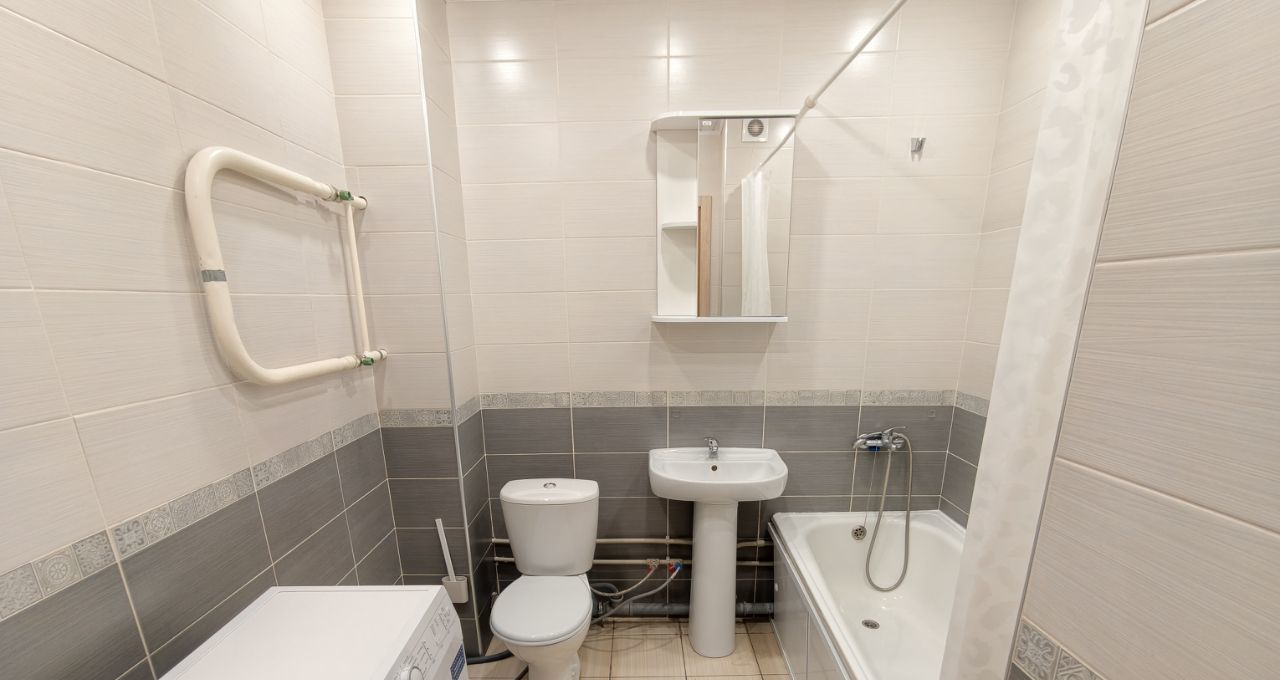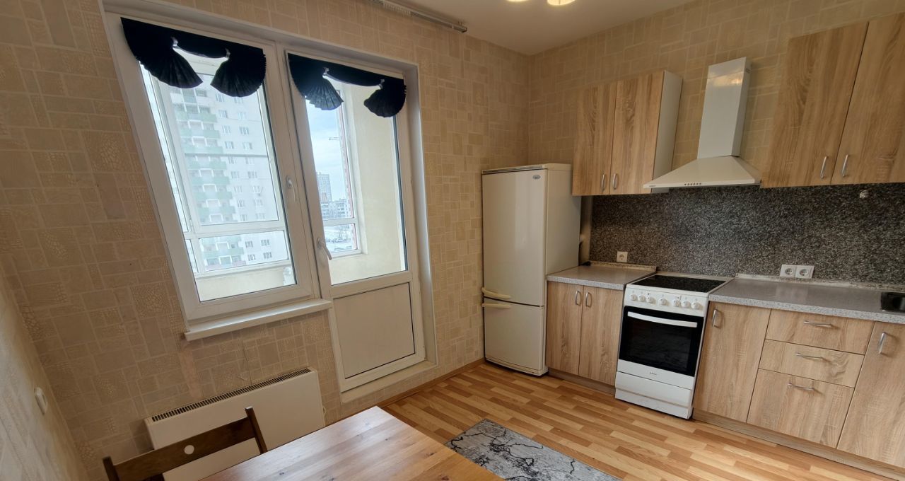 В квартире есть всё необходимое для проживания. Встроенная кухня, холодильник, электрическая плита, стиральная машина в зале диван, комод, стол, стулья, на кухне обеденный стол со стульями, в прихожей шкаф. Заезжай и живи.