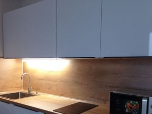 В квартире современный и стильный ремонт с теплыми полами в ванной, кухне, прихожей и на лоджии. Очень удобный для сна диван-кровать с ортопедическим матрасом, бытовая техника марок Икея и Bocsh, вместительный шкаф-купе в комнате и прихожей.