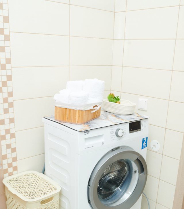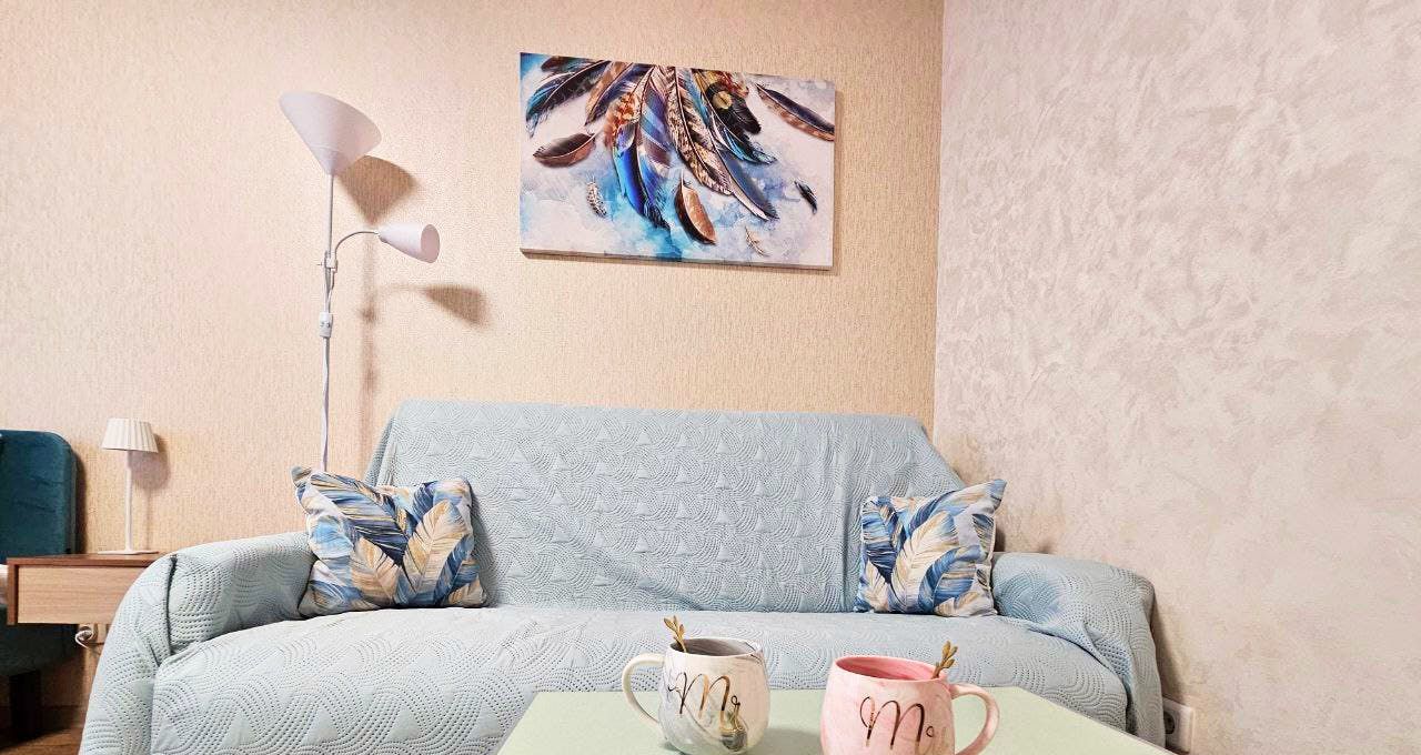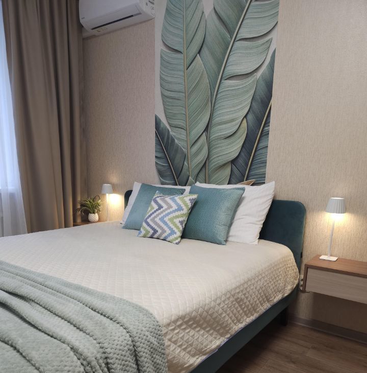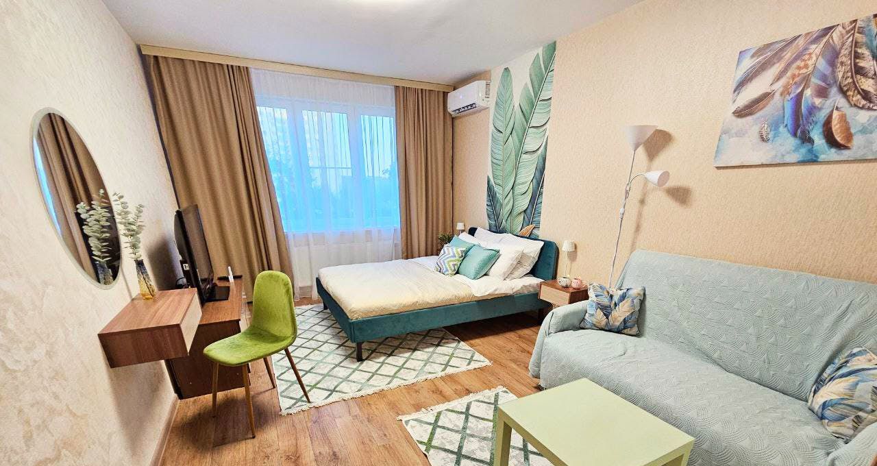 Полный комфорт: Кровать с ортопедическим матрасом, удобный диван, кондиционер, телевизор, кофеварка, микроволновая печь, стиральная машина, утюг, фен есть все для комфортного проживания.