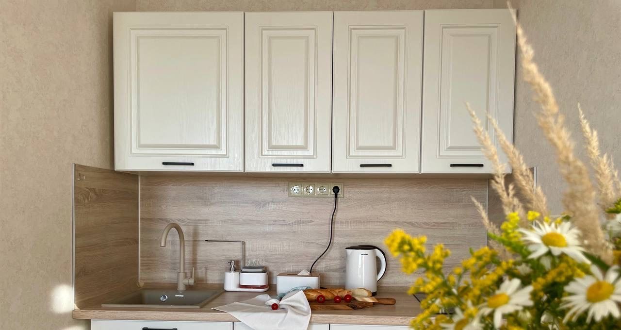 — Полностью оборудованная кухня (холодильник, плита, микроволновка, чайник, фильтр, вся необходимая посуда)