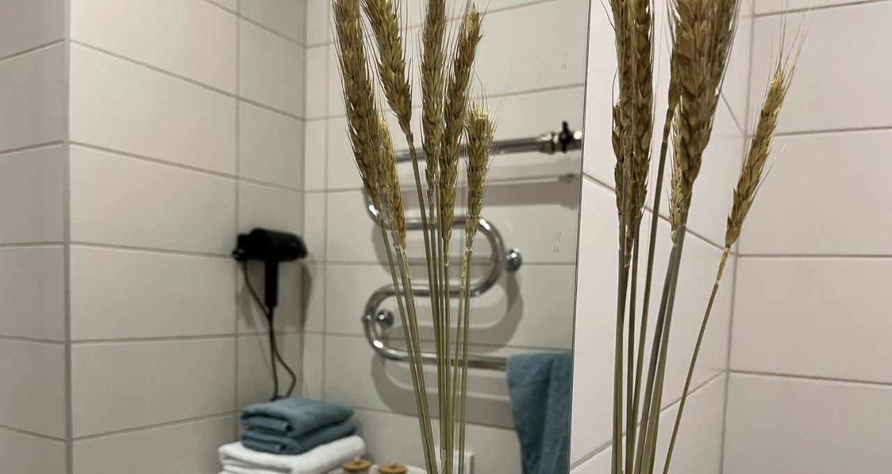 — Опрятная ванная комната, фен, белоснежные полотенца, необходимые мелочи