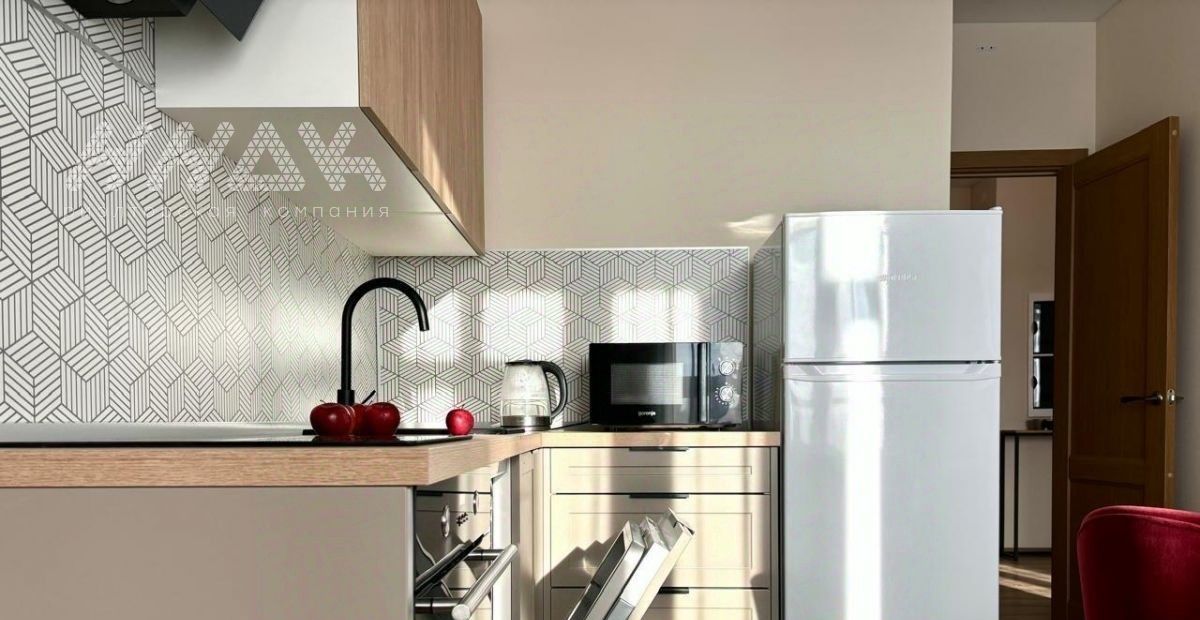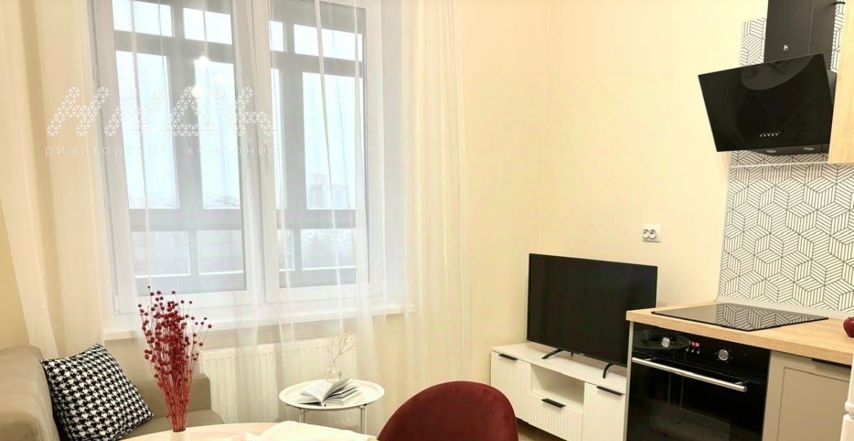 Большая кухня - 11 кв.м, комната 14 - кв.м, вместительная прихожая, гардеробная. Квартира полностью укомплектована новой мебелью и техникой: холодильник, духовой шкаф, варочная электрическая панель, вытяжка, посудомоечная машина, микроволновая печь, стиральная машина, телевизор. Вся мебель подобрана дизайнером в едином стиле. При необходимости, на кухне имеется дополнительное спальное место.