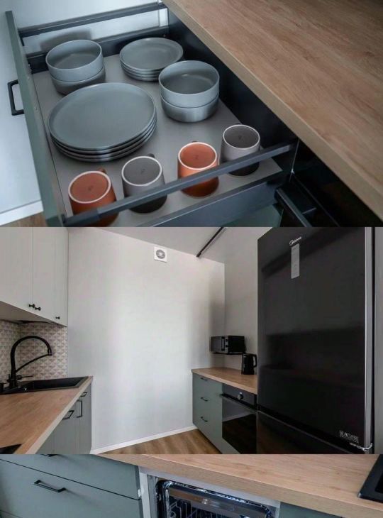 Есть все для комфорта: от посудомойки и теплого пола в ванной до blackout штор, чтобы лучше высыпаться.