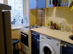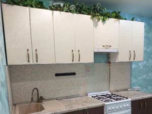 Уютная, светлая. На 5 этаже 5 этажного дома. В квартире остается кухонный гарнитур, стенка и диван в комнате.