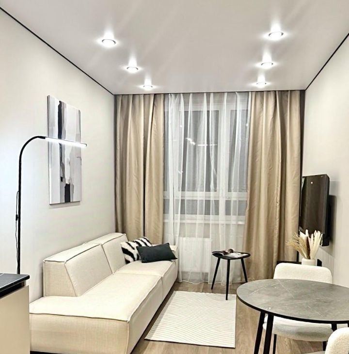- гостиная с удобным раскладным диваном и ТВ-зоной — идеальное место для отдыха и просмотра фильмов.