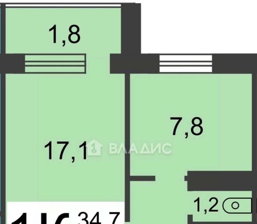 В квартире выполнен качественный косметический современный ремонт. Хорошая планировка и расположение комнаты, большая просторная лоджия. Общая площадь квартиры 34,7 м2.