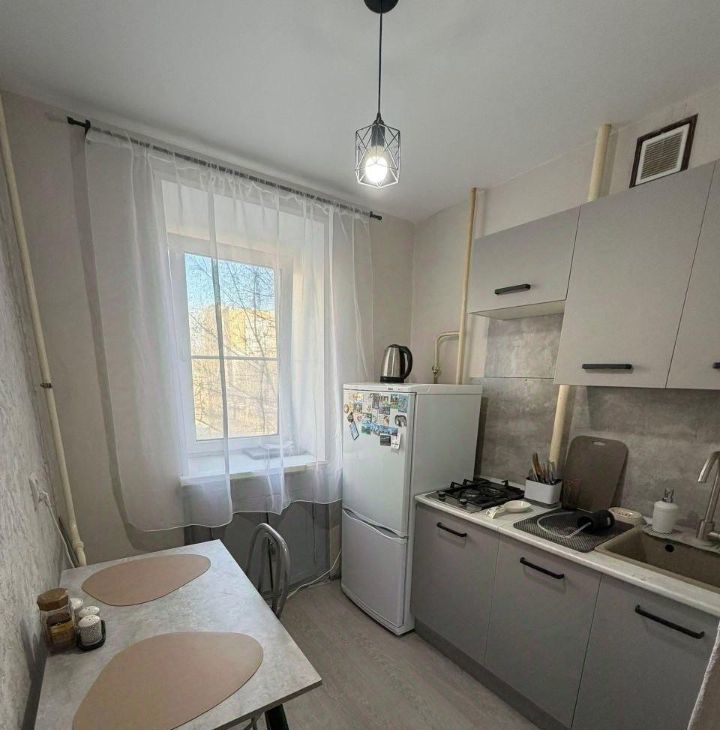 В квартире сделан косметический ремонт. Кухня площадью 5 кв. м оборудована всем необходимым: есть холодильник и стиральная машина. Мебель установлена как на кухне, так и в комнате, поэтому вы сможете сразу заселиться и наслаждаться комфортом. Санузел совмещенный, с ванной, а окна выходят во двор, что обеспечивает тишину и уединение.