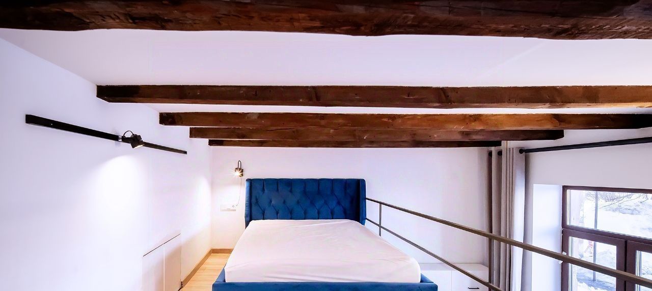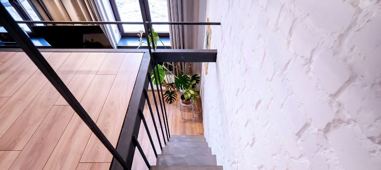 Ремонт выполнен по индивидуальному дизайн-проекту, благодаря нестандартной высоте потолков получилось реализовать 2 уровня в квартире.