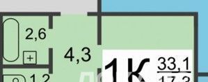 Общая площадь — 33,1 м², кухня — 7,6 м².