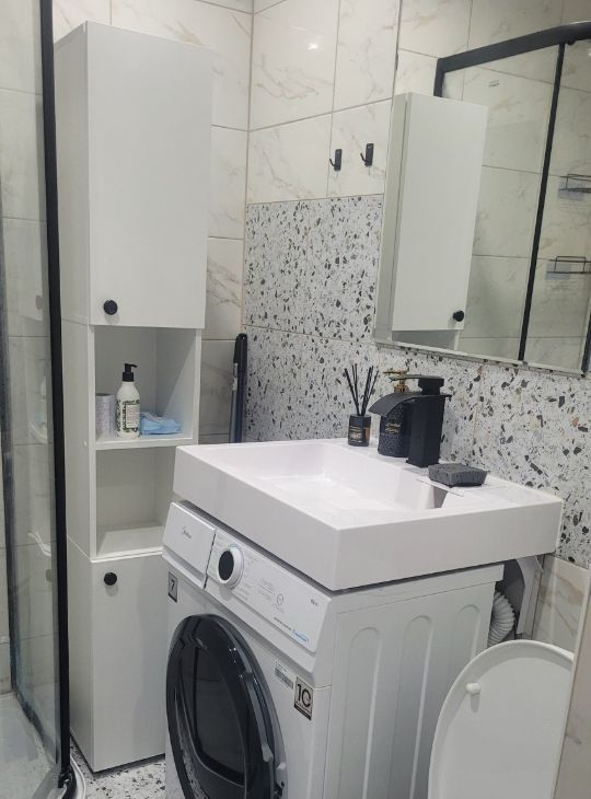 В квартире сделан евроремонт, что создаёт современную и приятную атмосферу. Кухня и комната меблированы, поэтому можно сразу заезжать и жить. Из техники есть всё необходимое для комфортного проживания: холодильник, микроволновка, варочная панель,газовая духовка, колонка автомат,телевизор смарт,стиральная машина. Санузел совмещённый, оснащён душевой кабиной.