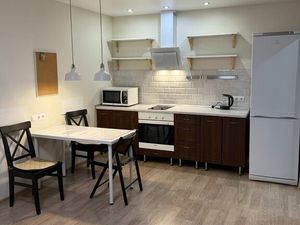 Есть кухонный гарнитур, кухонный стол, стулья, варочная панель, стиральная машина, холодильник, Wi-Fi, Вместительная гардеробная.