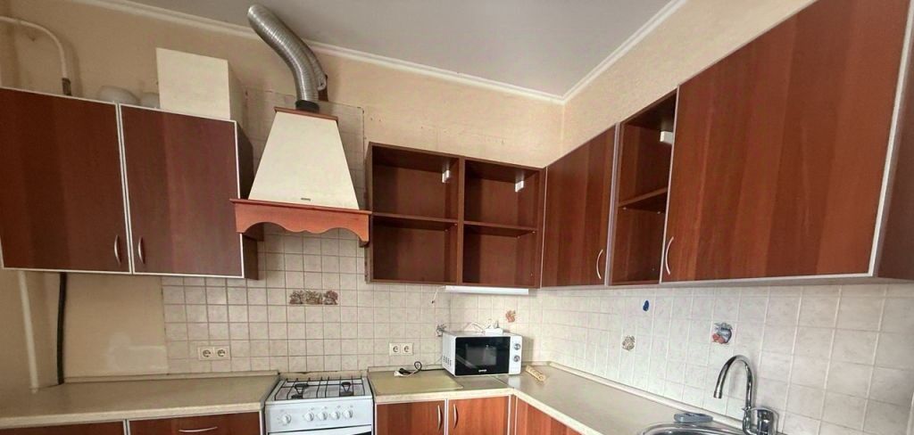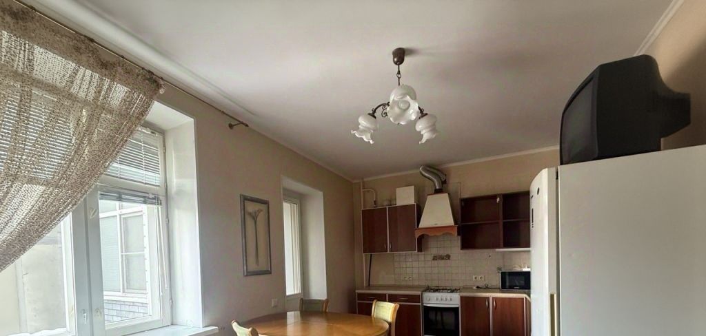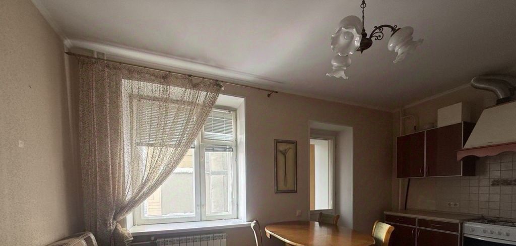 Квартира большая и просторная. Комната 25 кв.м., кухня 15 кв.м с выходом на лоджию 3 кв.м. Санузел совмещенный 5 кв.м. В квартире есть двухспальная кровать, шкаф, комод, диван, кухонный гарнитур, плита, микроволновка, кухонный стол и стулья, холодильник, стиральная машина, бойлер. Окна выходят во двор.