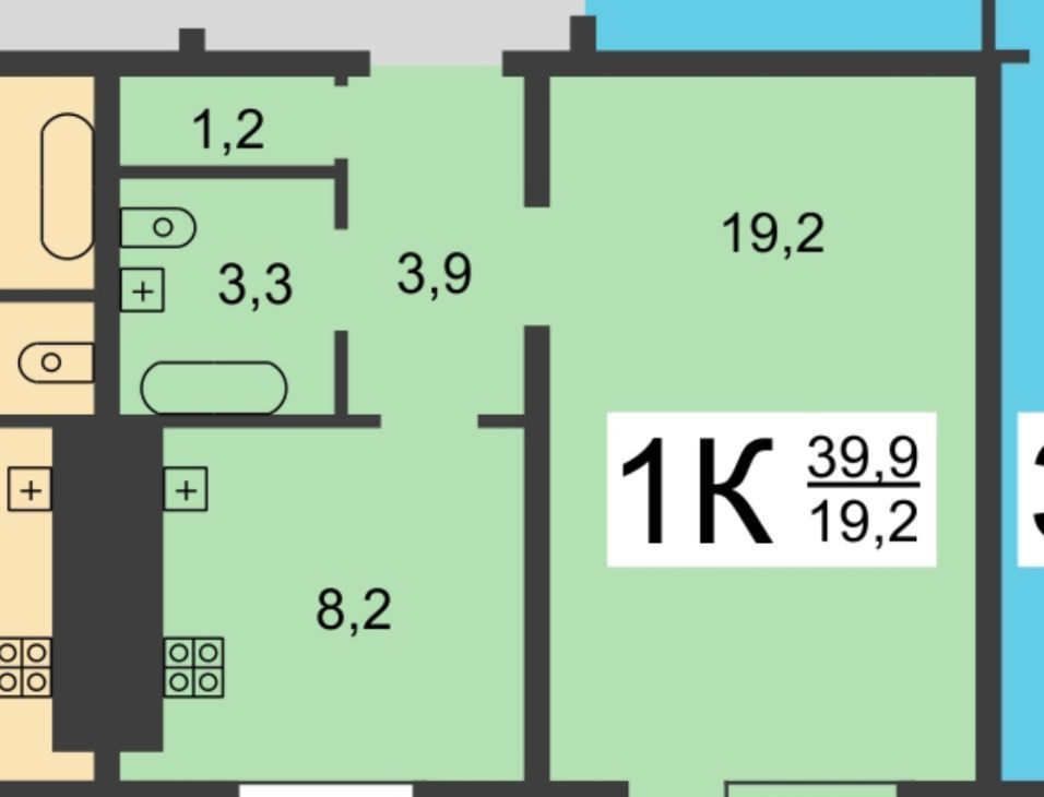 1-к кв. Нижегородская область, Нижний Новгород ул. Космонавта Комарова, 2к2 (39.9 м²)