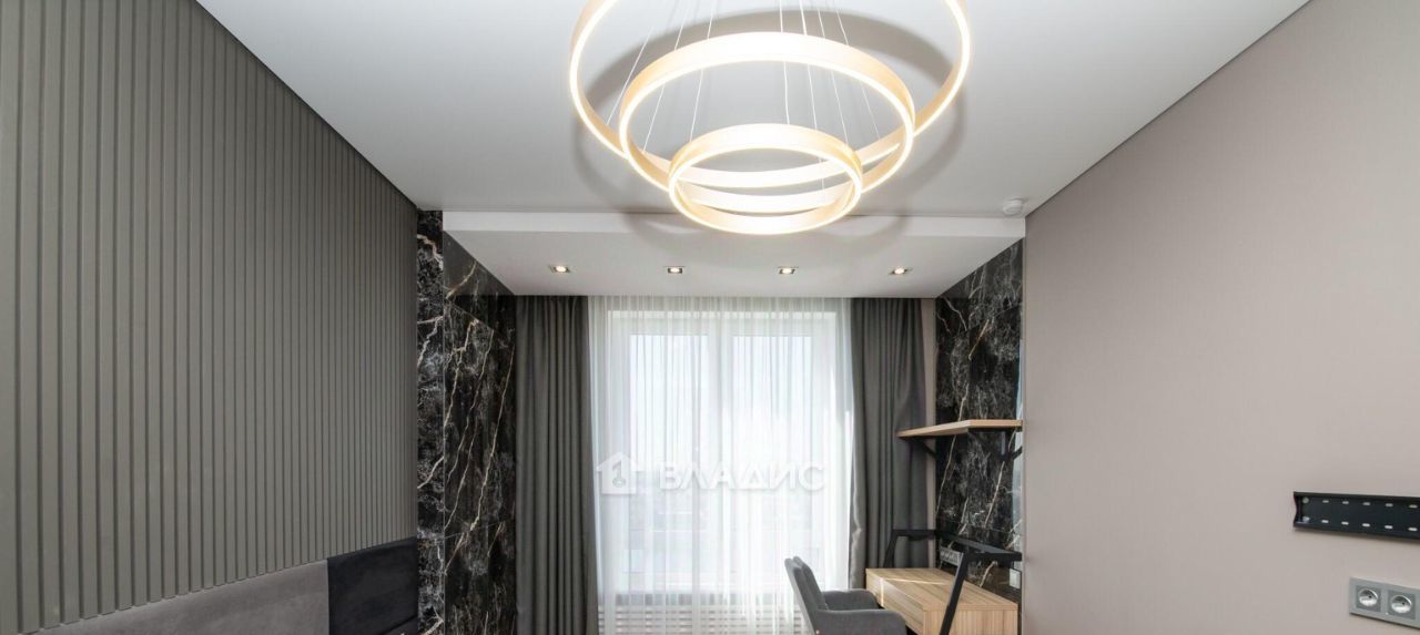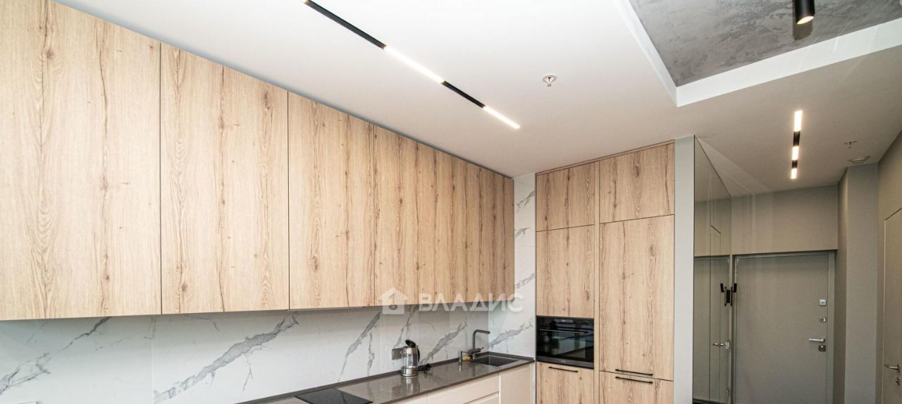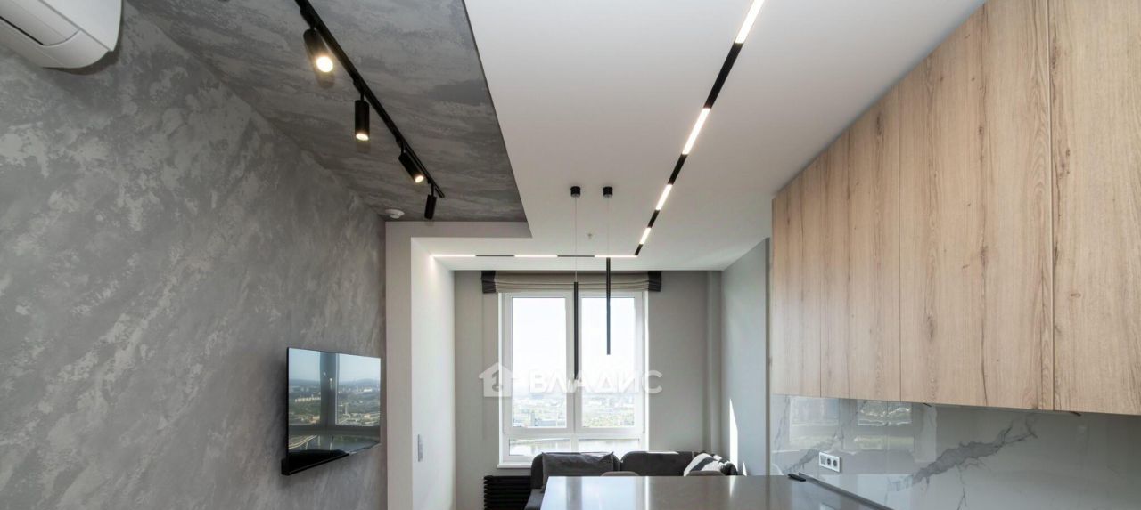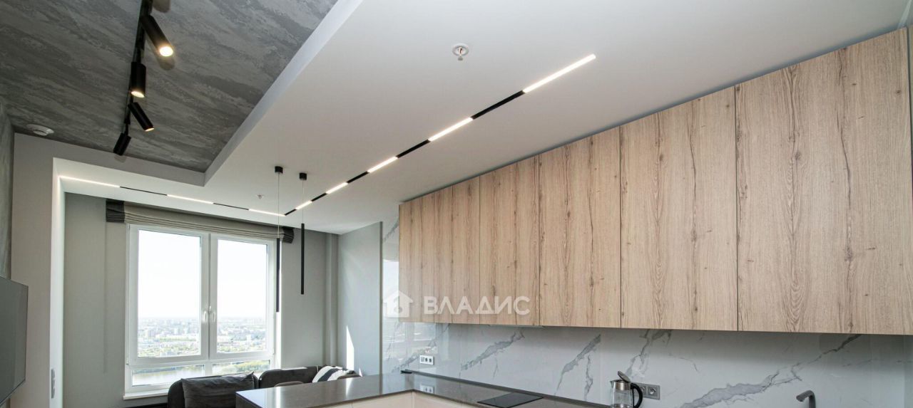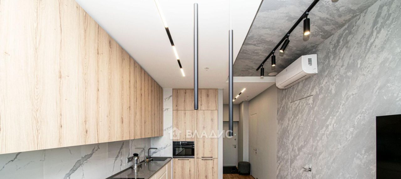 Дизайнерский ремонт придаёт особый шарм и уют. Общая площадь составляет 52,4 квадратных метра, из которых 18.5 кв. м. приходится на жилую зону и 18,5 кв. м. — на просторную кухню-гостиную, 7,5 кв. м. - санузел, 4 кв. м. - вместительный гардероб.