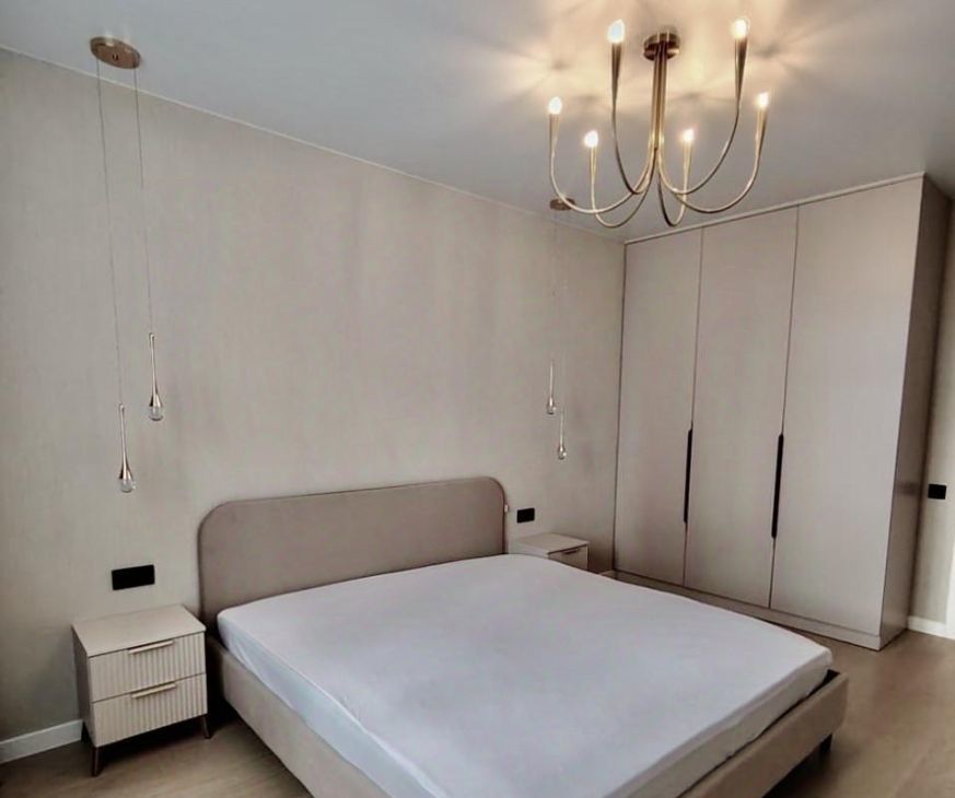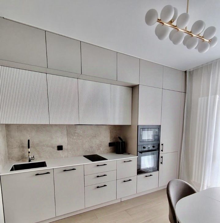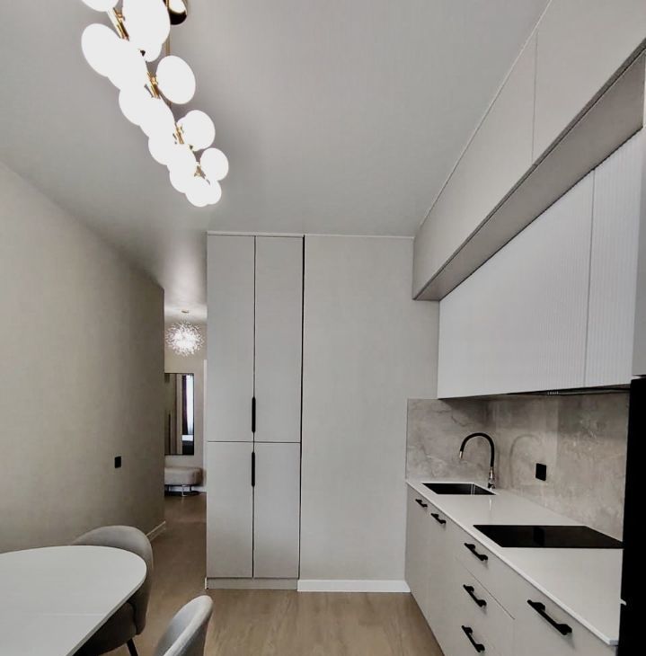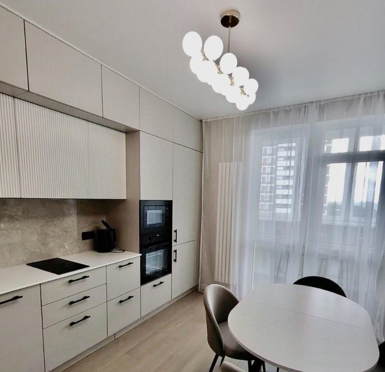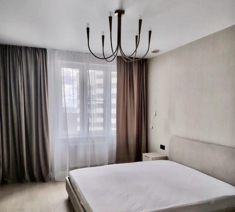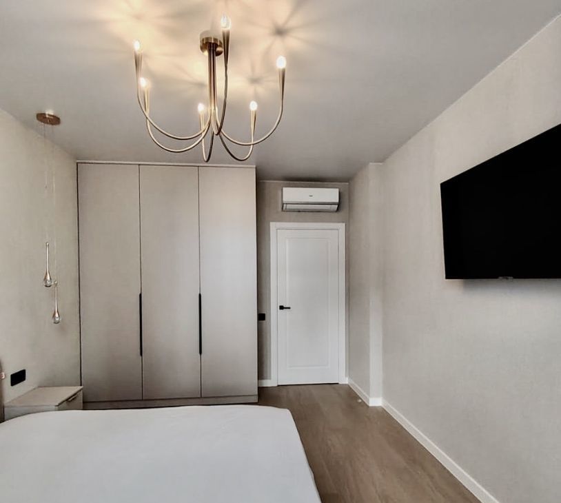 Общ. пл. — 42 кв.м. Кухня-гостиная - 12.5 кв.м., спальня - 19.8 кв.м. В квартире сделан дизайнерский ремонт, что создаёт современную и комфортную атмосферу. Грамотно продумано освещение и розетки. Установлены кондиционер, посудомоечная машина. Квартира полностью меблирована, на кухне и в комнате есть всё необходимое для комфортного проживания.