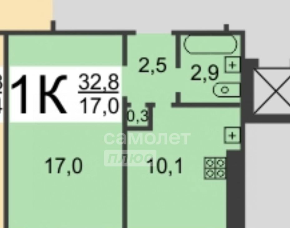1-к кв. Нижегородская область, Нижний Новгород ул. Мельникова, 30 (32.8 м²)